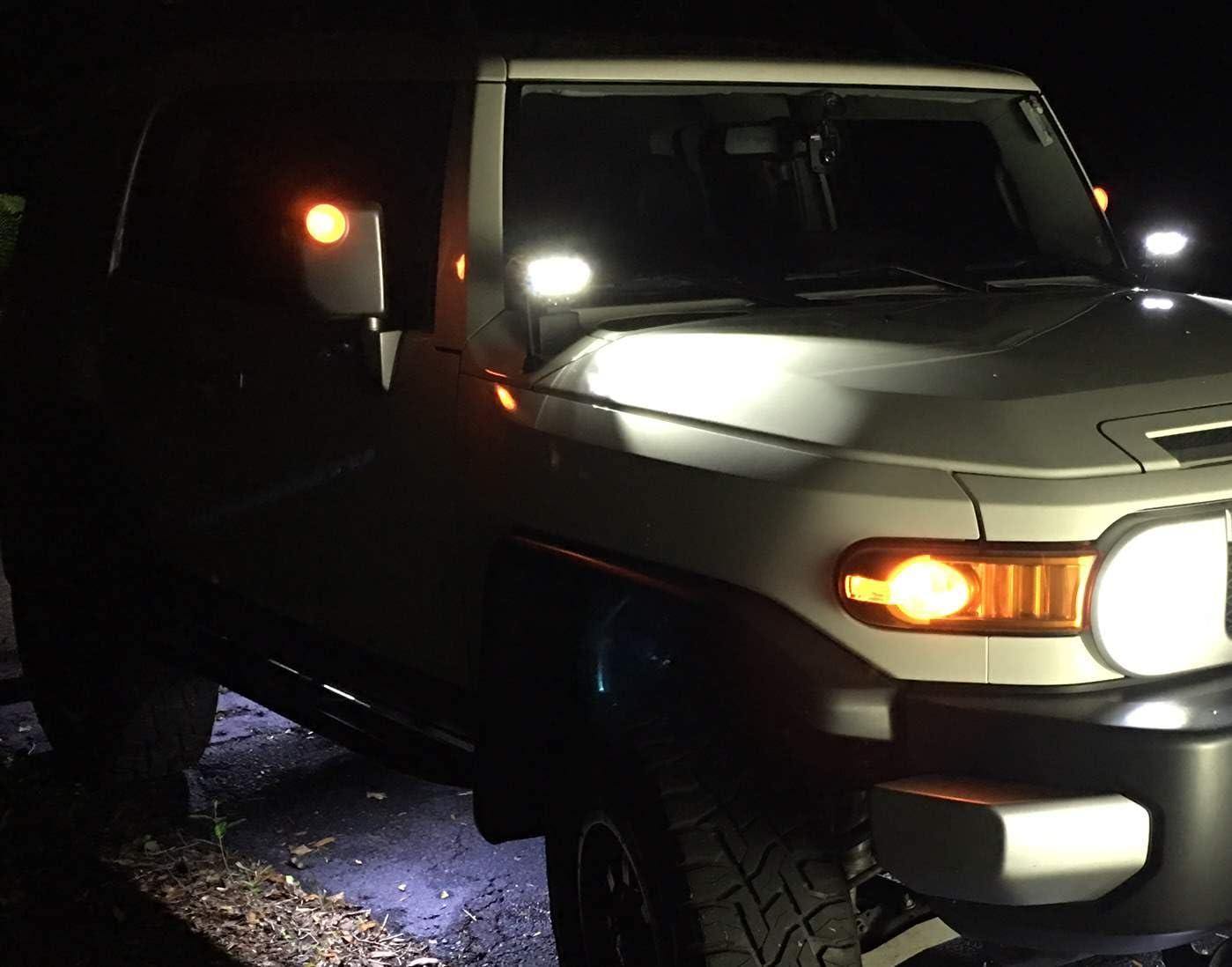 This page showcases a set of iJDMTOY JDM Amber Yellow 4-SMD High Power LED Side Mirror Replacement Bulbs Compatible With 2007-2014 Toyota FJ Cruiser.To learn more about the product, please see the detailed feature bullet points and pictures.