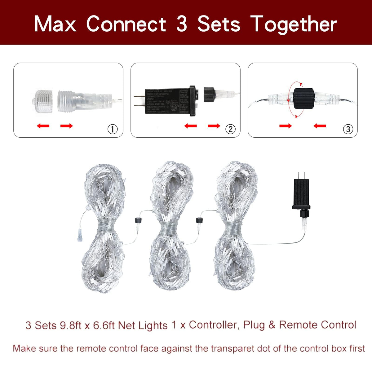 Q: Can I connect multiple sets of these lights together?A: Absolutely! The IJG 200 LED Christmas Net Lights are connectable and can be linked with up to 3 sets for larger decorating areas, eliminating the hassle of multiple plugs.