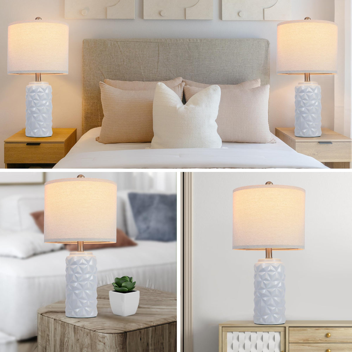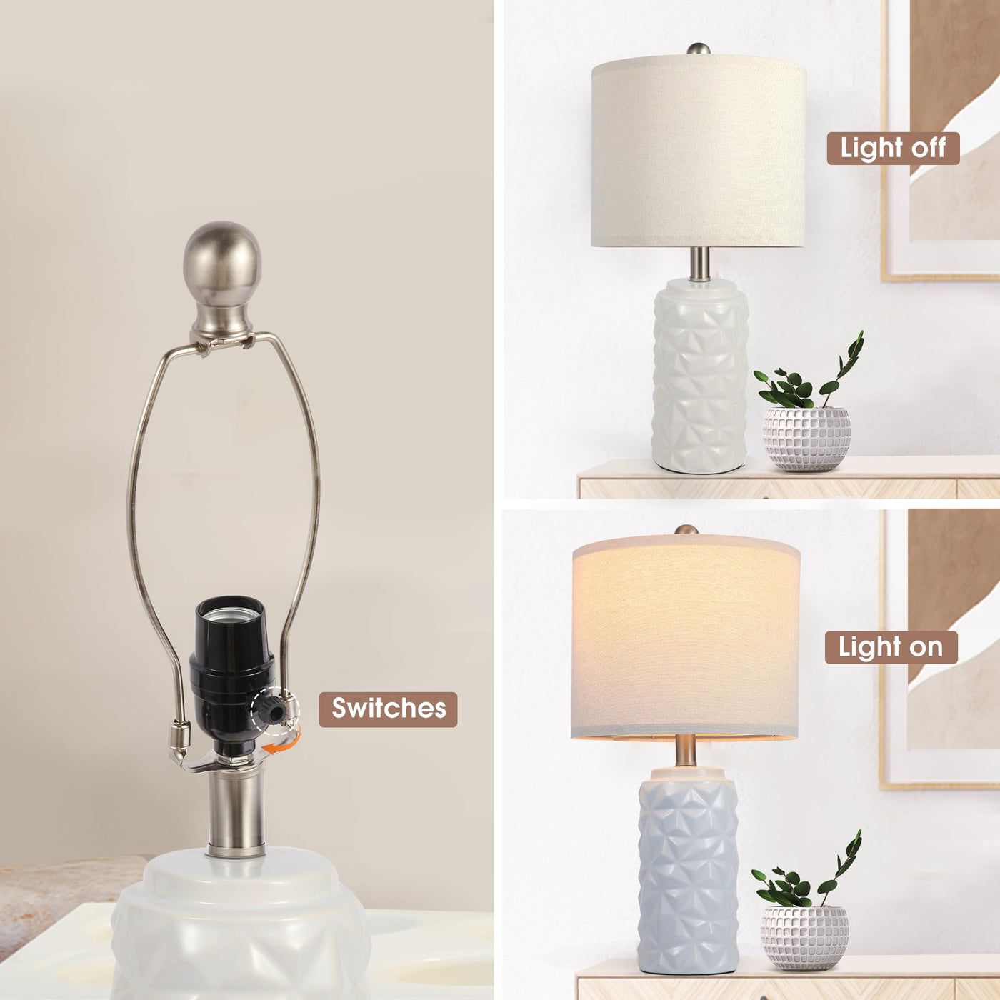 Ikopyal 22'' White Modern Ceramic Bedside Lamp For Bedroom Decor Farmhouse Table Lamp For Living Room Office Dorm
