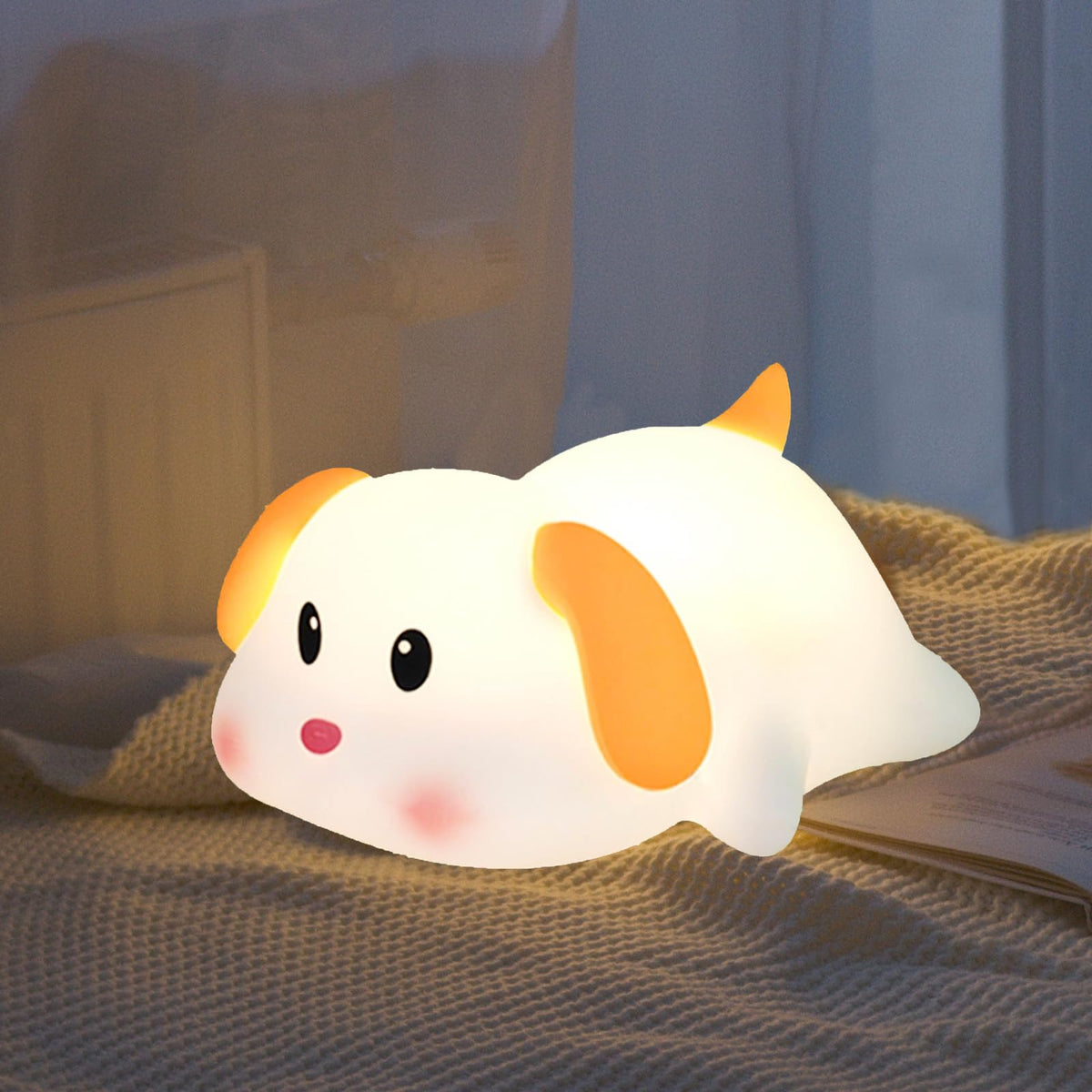 iLAFFUS Night Light for Kids Lamp, Cute Dog Lamp,3 Level Dimmable Baby Night Lights for Nursery,Silicone Rechargeable Nightlight