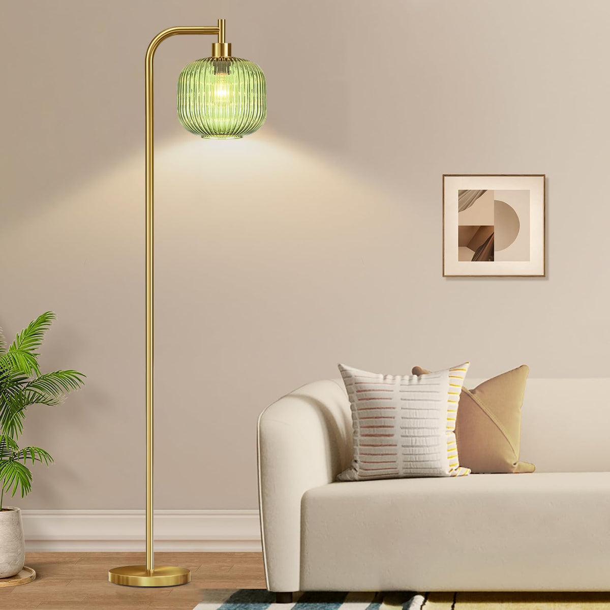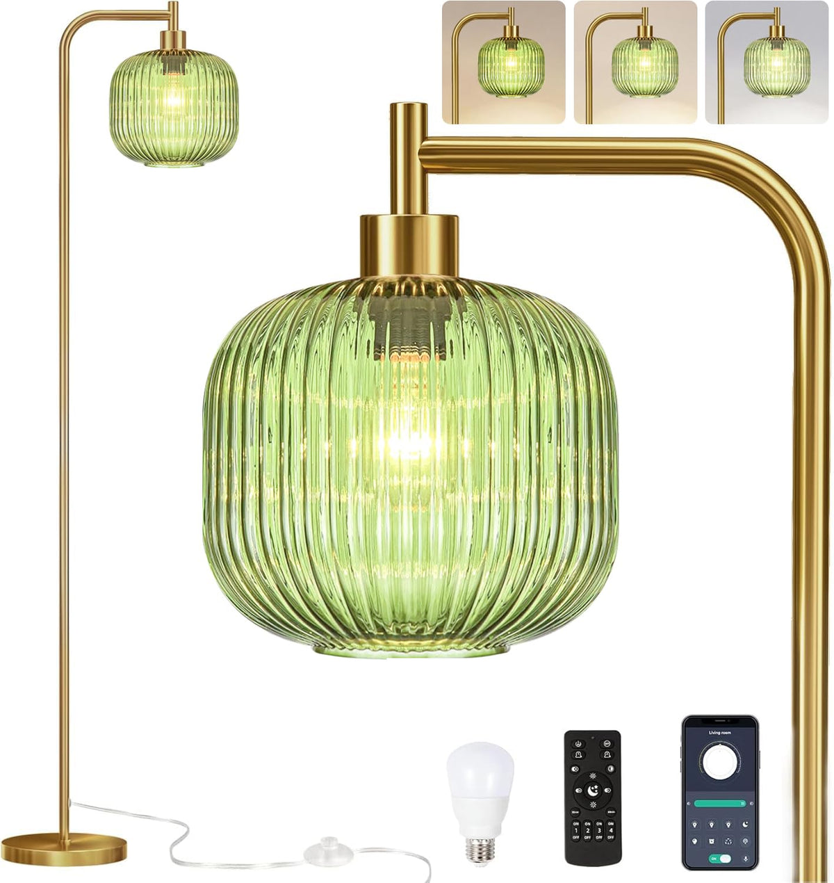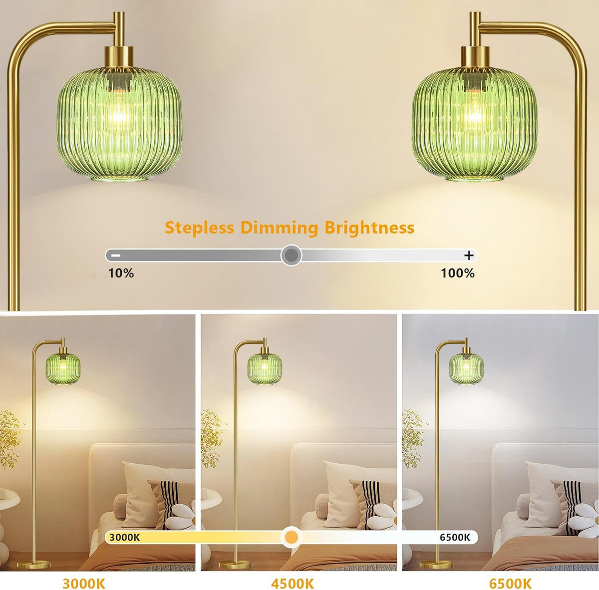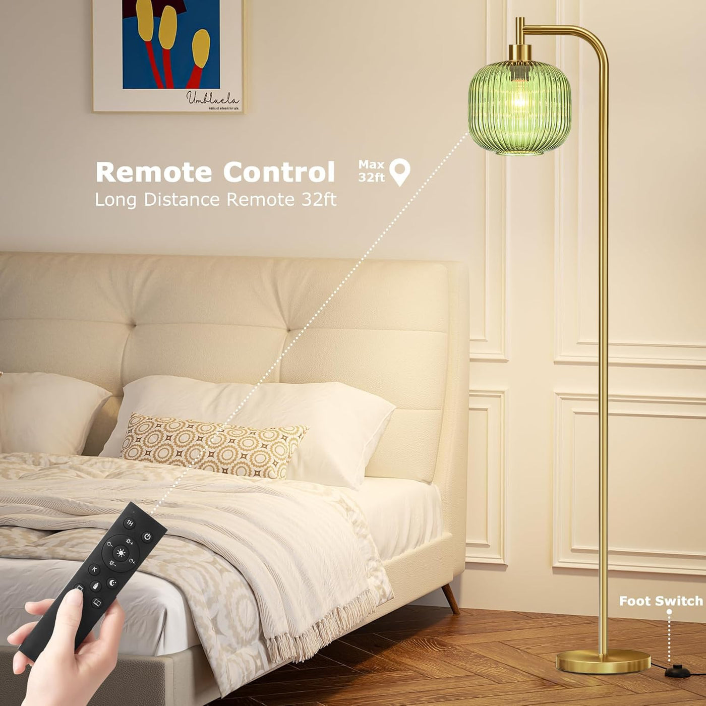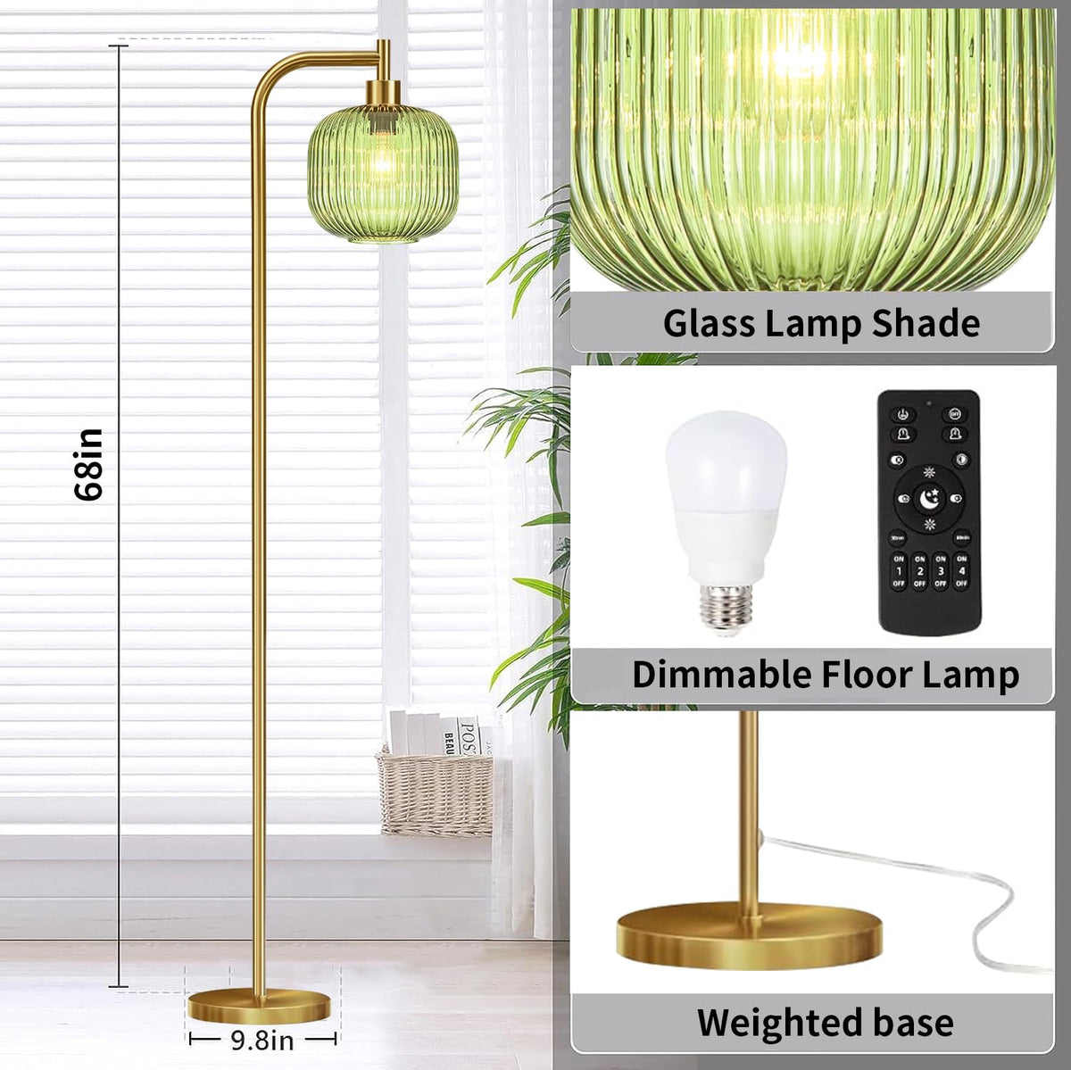 Floor Lamp For Living Room,Bedroom,Dimmable Standing Lamp With Remote,Gold Brass Tall Lamp Mid Century Modern Floor Lamps Green Glass Lampshade Boho Vintage Retro Farmhouse Floor Light Bohemian