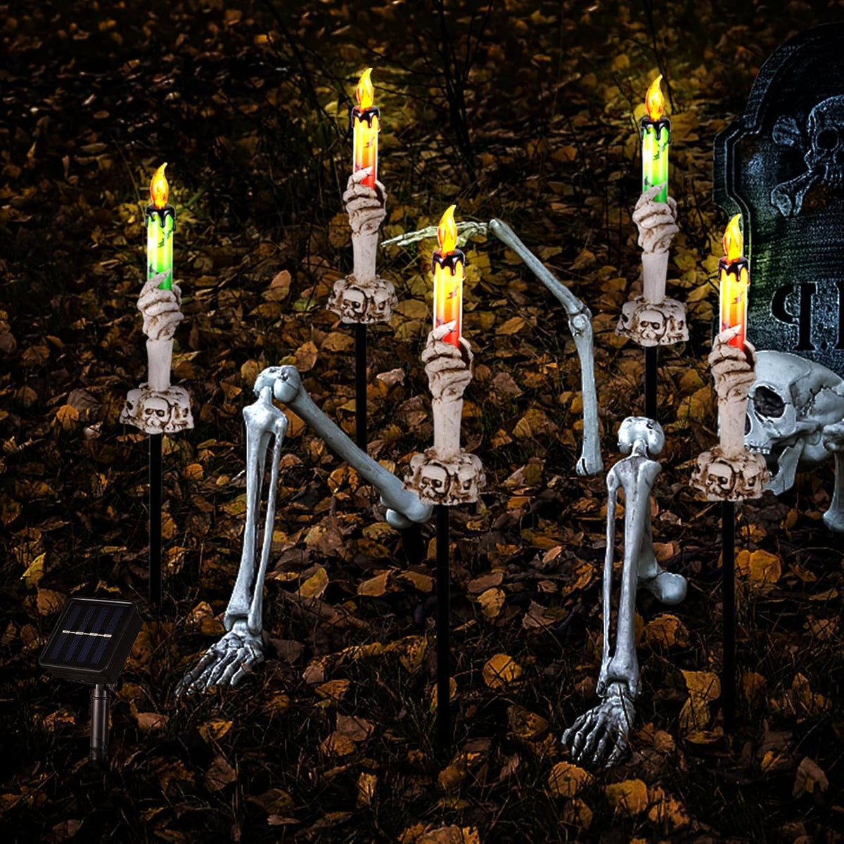 Q: How many lights are included in a pack?A: Each pack of ILLUMINEW Halloween Pathway Lights includes five candle skull hand candle holders, allowing you to decorate multiple areas of your home or garden for Halloween.