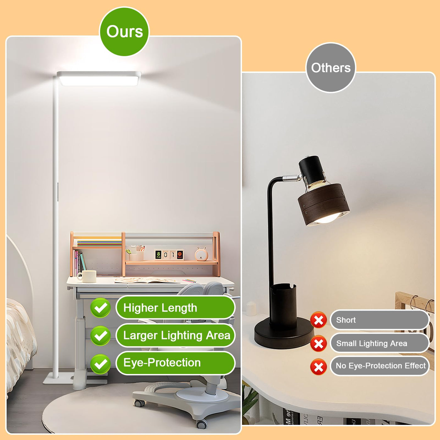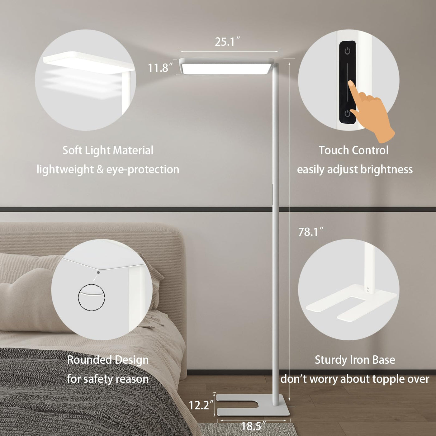 Illus Illumination 78'' Led Floor Lamp 80W White Modern Floor Lamp Dimmable Full-Spectrum Standing Lamp 4000K Eye-Care Tall Read