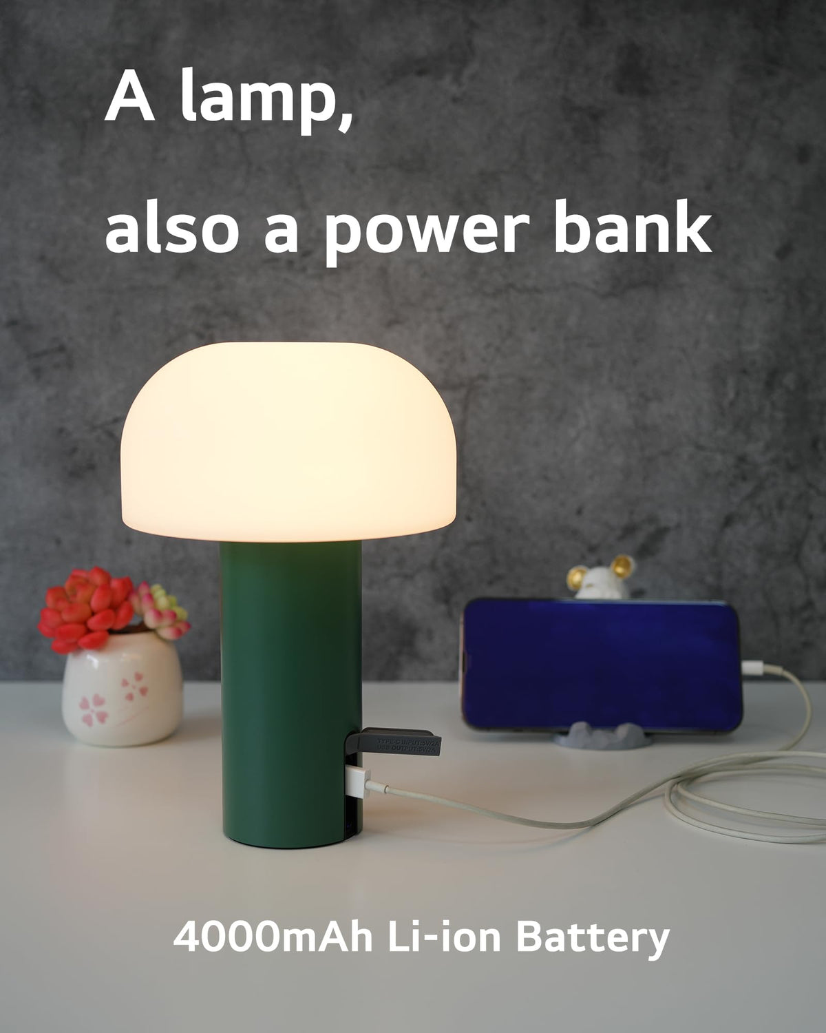 Ilovinit Green Outdoor Mushroom Table Lamp - Rechargeable, Cordless, Waterproof, Usb Charging