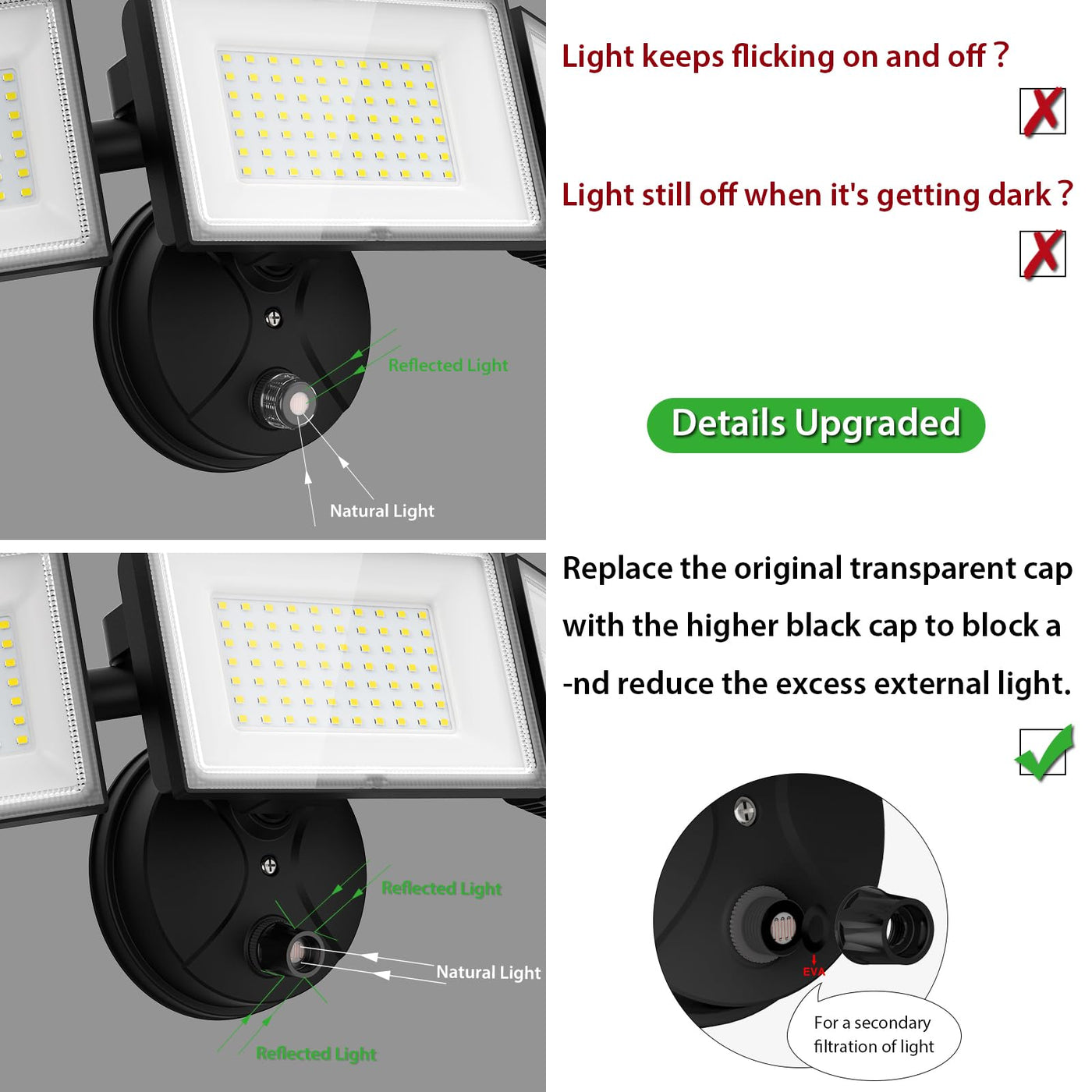 - **Adjustable Heads for Enhanced Coverage**: Featuring three adjustable heads that can be easily rotated, this floodlight allows you to customize the lighting direction, covering a wider area up to 1977ft². Perfect for illuminating large outdoor spaces like backyards, gardens, and entryways.