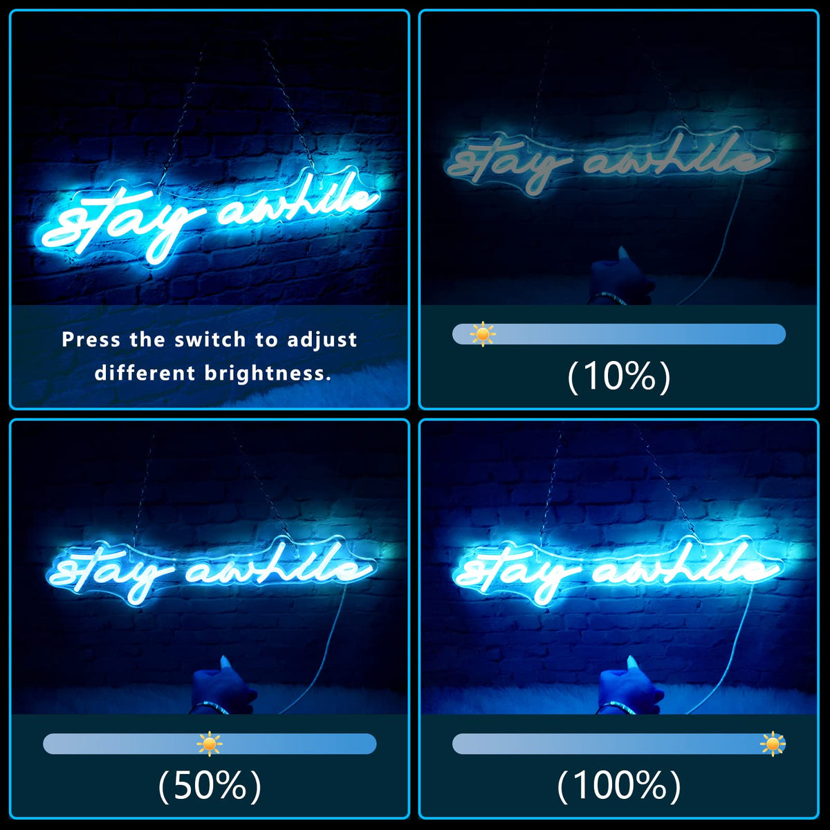- **Adjustable Brightness**: Enjoy three levels of brightness with an easy-to-use dimmer switch. Whether you want a soft glow for a relaxing evening or a brighter ambiance for entertaining, this neon sign can be customized to suit your mood.