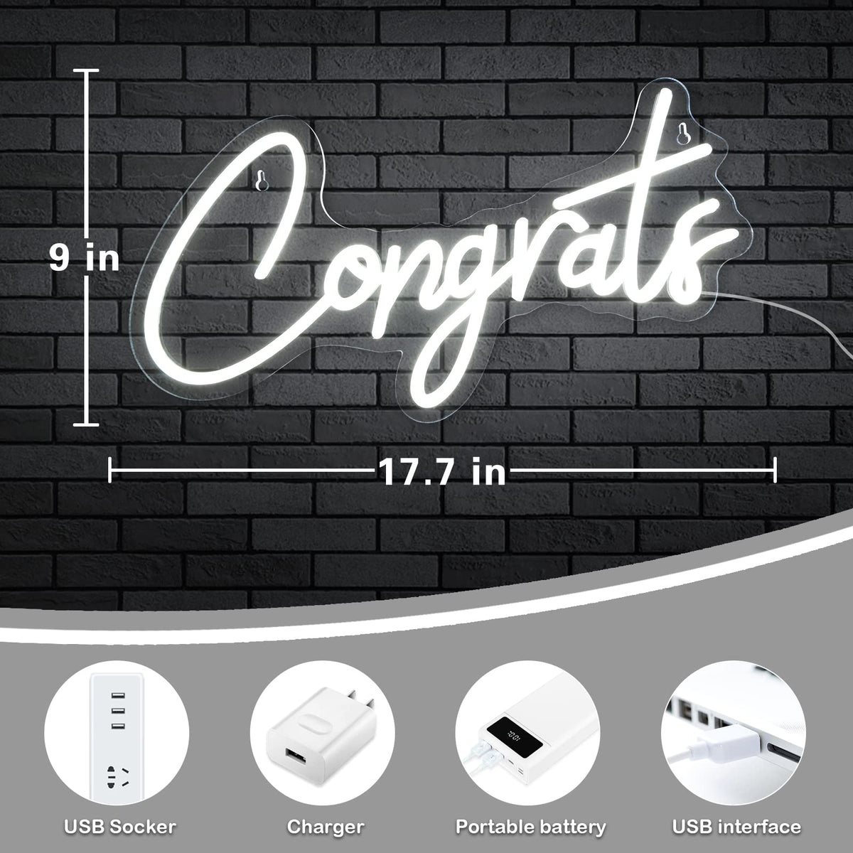 Imegina Dimmable White Congrats Neon Sign - 17.7X9 Inch Led Wall Decor For Graduation Party