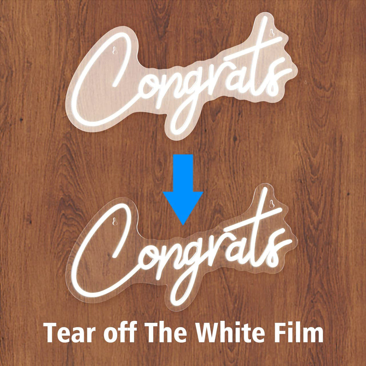 Q: What are the dimensions of the IMEGINA White Congrats Neon Sign?A: The IMEGINA White Congrats Neon Sign measures 17.7 inches in length and 9 inches in width, making it a perfect size for wall decor during graduation celebrations.