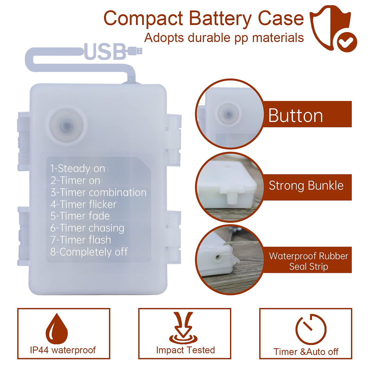 Q: Can these string lights be used outdoors?A: Yes, the Impress Life Acorn String Lights are suitable for indoor and covered outdoor use. However, it is important to keep the battery box dry and avoid soaking it in water to ensure safety and longevity.