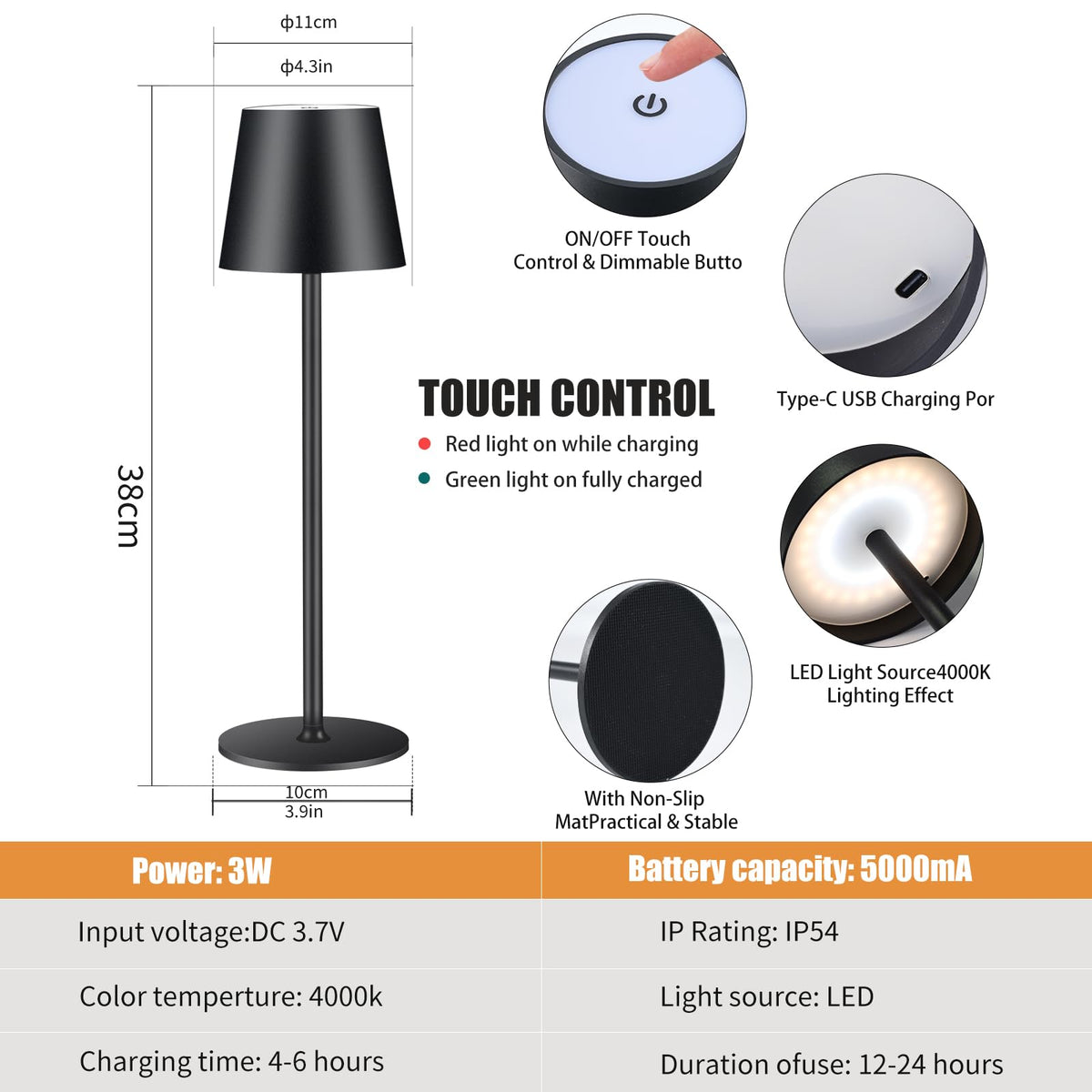 Portable Cordless Design: Enjoy the freedom of movement without the hassle of cords. The lamps lightweight structure makes it easy to relocate.