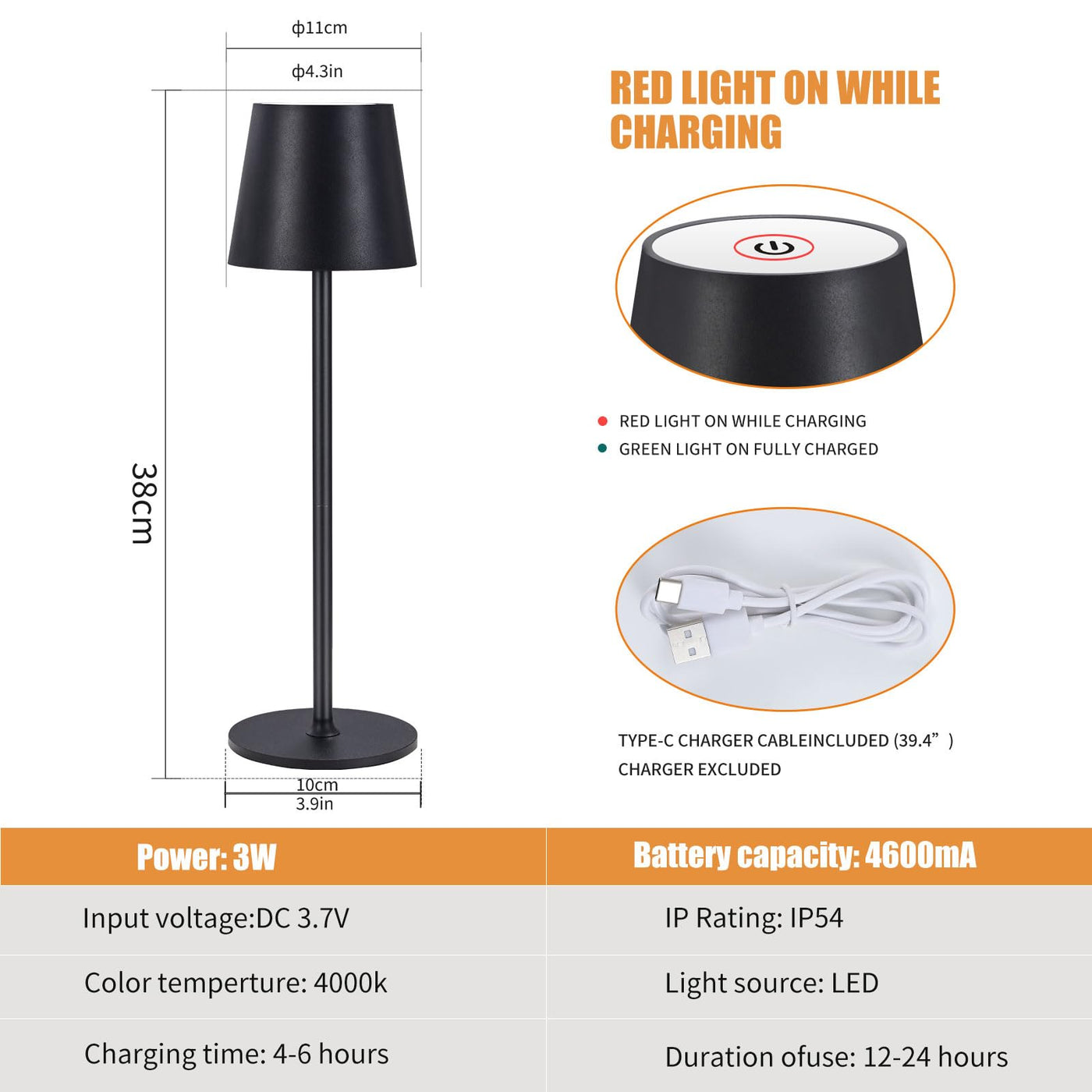 Q: How long does the battery last on the IMQSQIK Cordless Table Lamp?A: The IMQSQIK Cordless Table Lamp features a built-in 4600mAh rechargeable battery that can last up to 12-24 hours on a full charge, depending on the brightness level you choose.