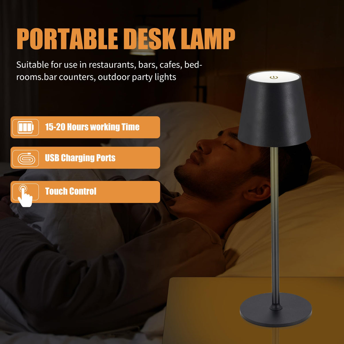 Imqsqik Cordless Table Lamps Usb Rechargeable Lamp Simplicity Desk Lamp Built-In 4600 Mah Battery Led Battery Operated Lamp With
