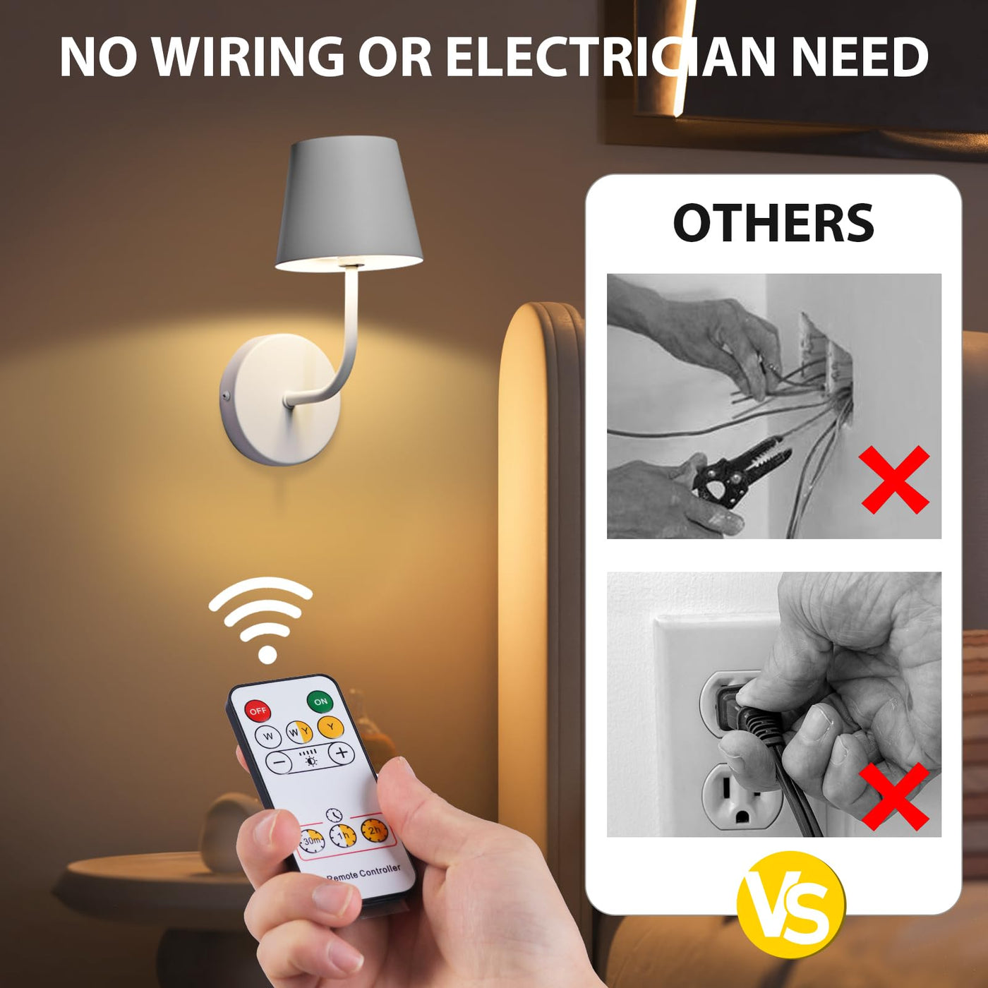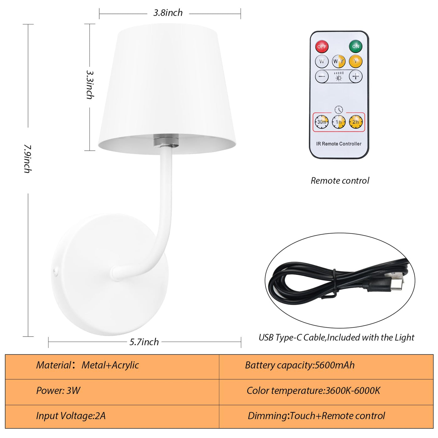Constructed from well-made metal, this wall lamp features a sleek and minimalist design that seamlessly blends into your decor. The lamp is equipped with a built-in rechargeable 5600mAh battery, allowing for extended use without the hassle of cords. It can be easily controlled by either touch or remote, providing convenience and flexibility to adjust lighting according to your needs. With an infinite dimming feature, you can set the brightness anywhere from 10% to 100%, creating the perfect ambiance for any occasion. Installation is straightforward, with all necessary hardware included for swift setup.