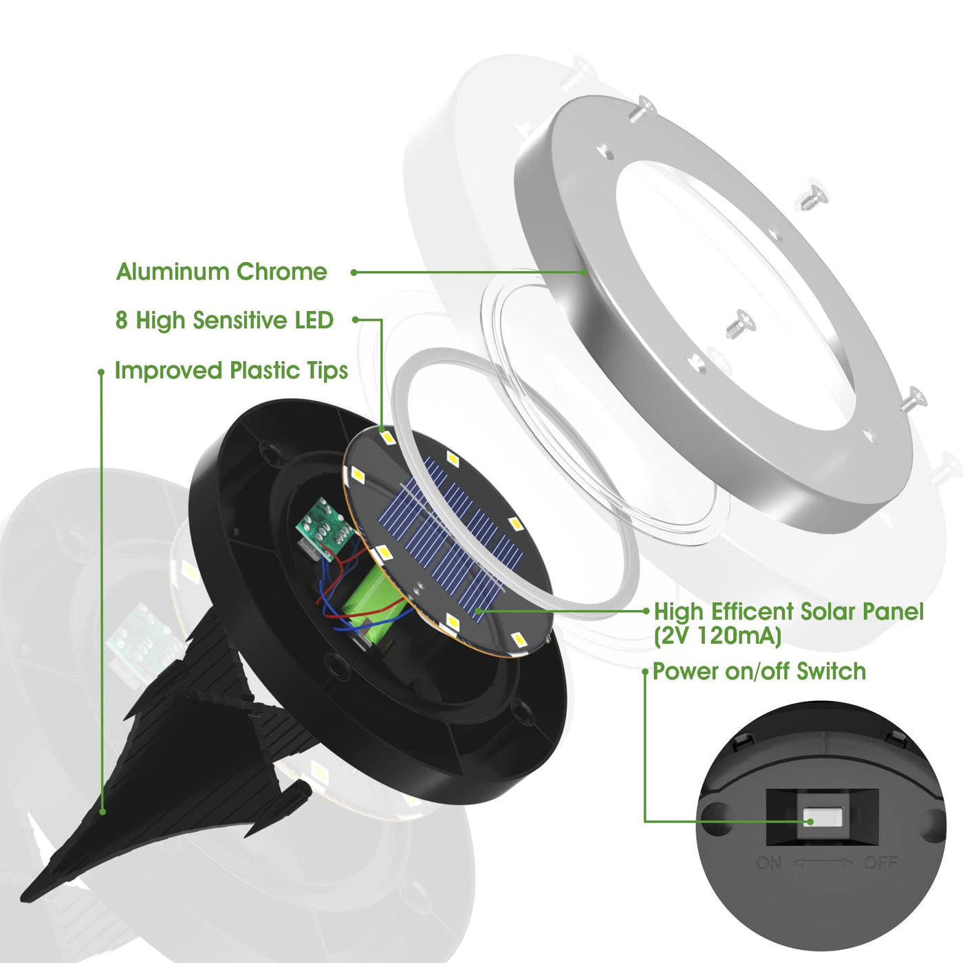 - **Efficient Solar Power**: Equipped with 8 high-efficiency LEDs, these solar lights harness renewable energy, offering 8-10 hours of runtime after just 8 hours of sunlight, reducing your energy costs while being environmentally friendly.