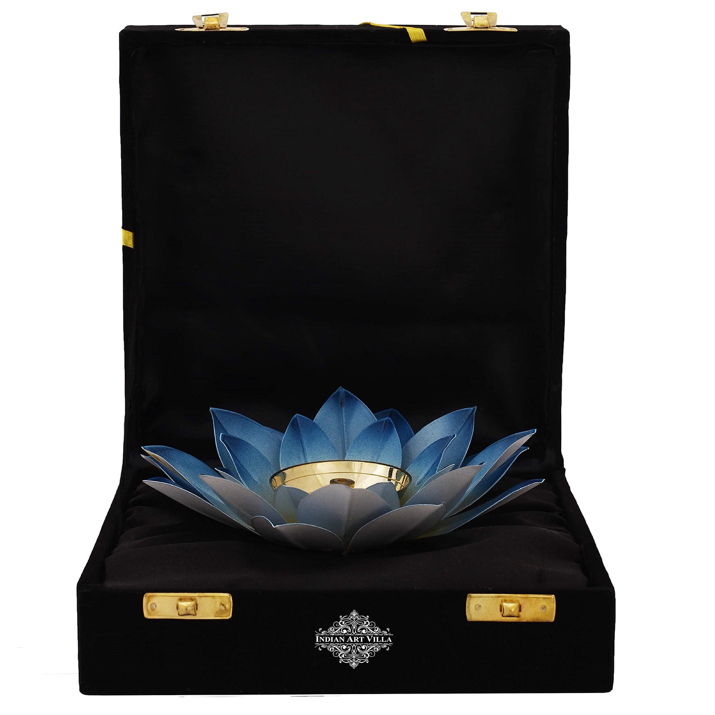 Indian Art Villa Lotus Design Diya Deepak, Home Décor, Poojan Purpsoe, 8 Inch, Blue