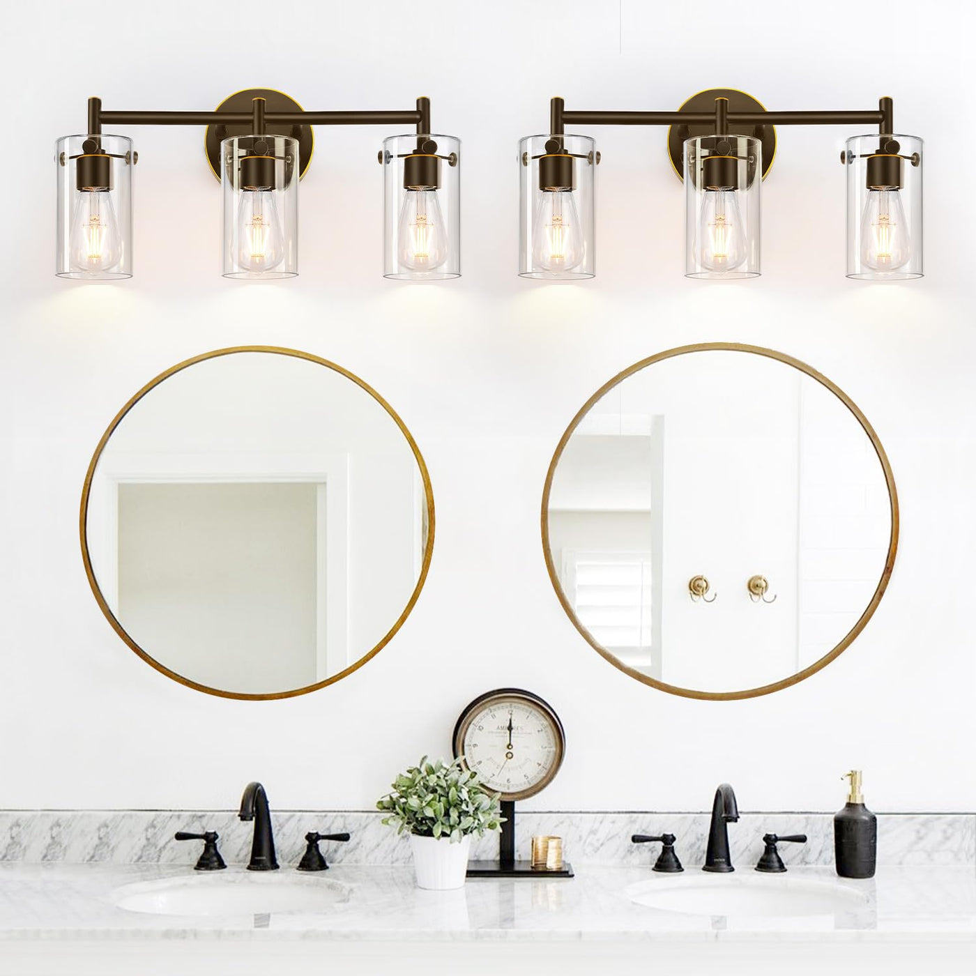 Indoi 3-Light Bathroom Light Fixtures 2023 Upgrade, Oil-Rubbed Bronze Modern Vanity Lights With Clear Glass Shade, Bathroom Wall