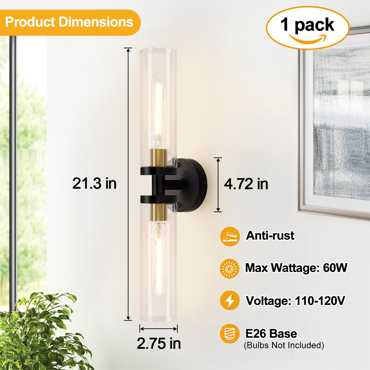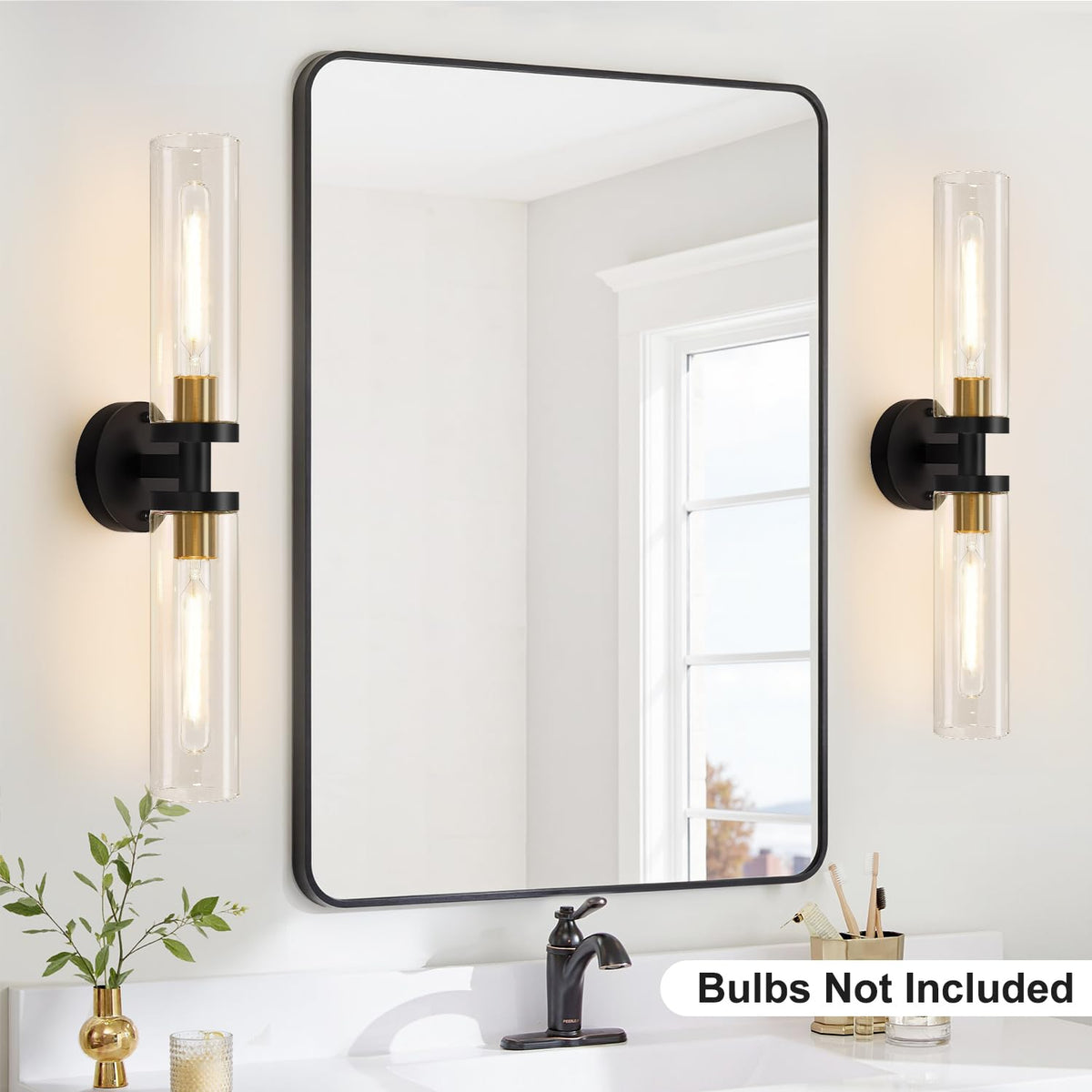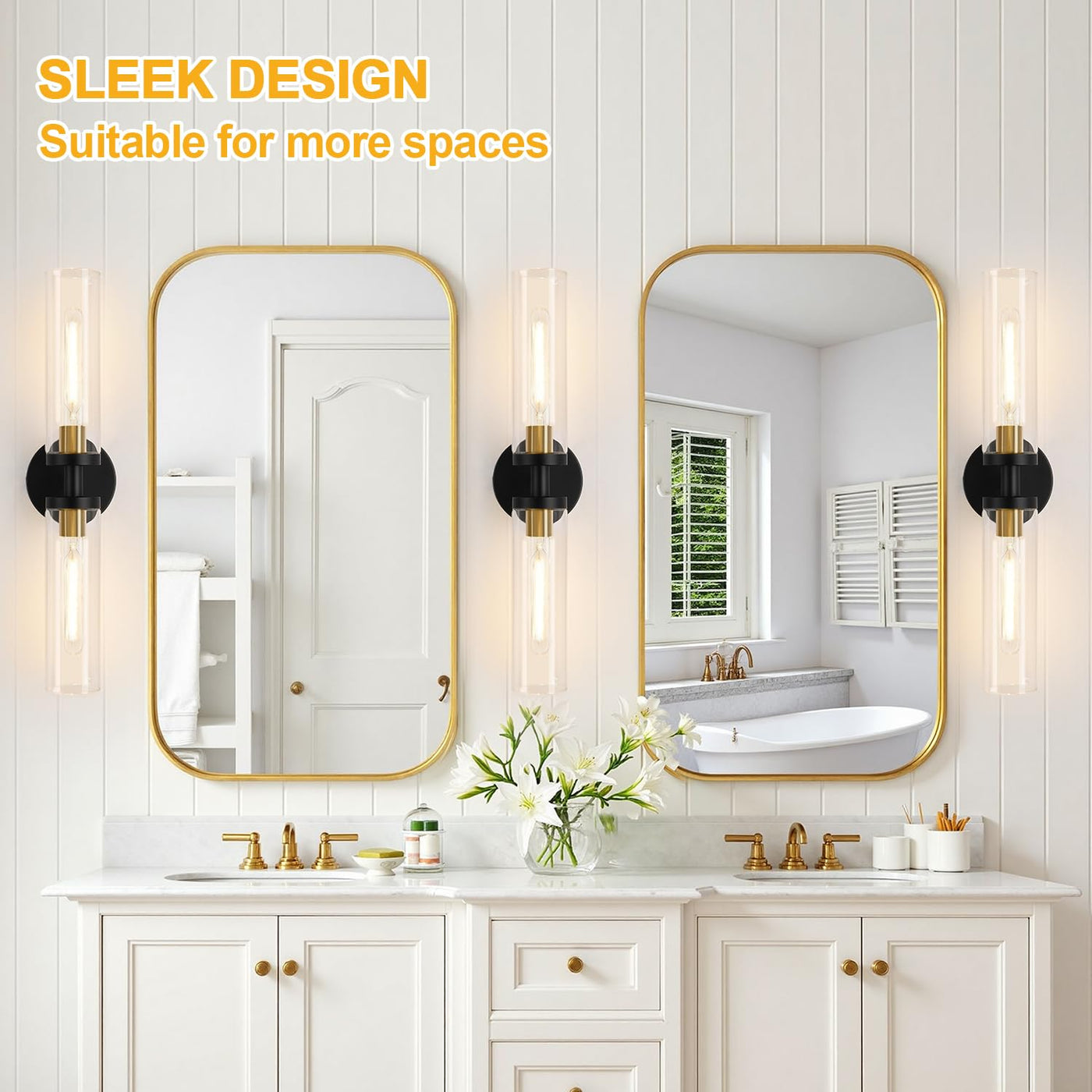Indoi Black And Gold Wall Sconce Bathroom Sconces Wall Lighting With Clear Glass Modern Sconces Wall Light Fixtures For Bathroom Mirror Living Room Hallway Bedroom