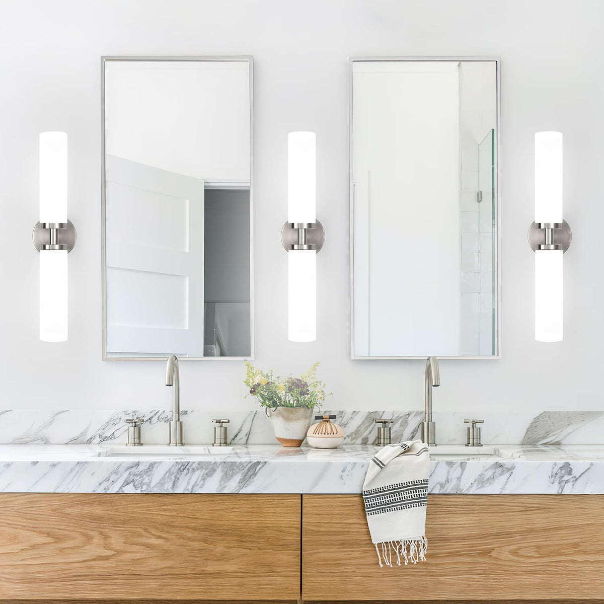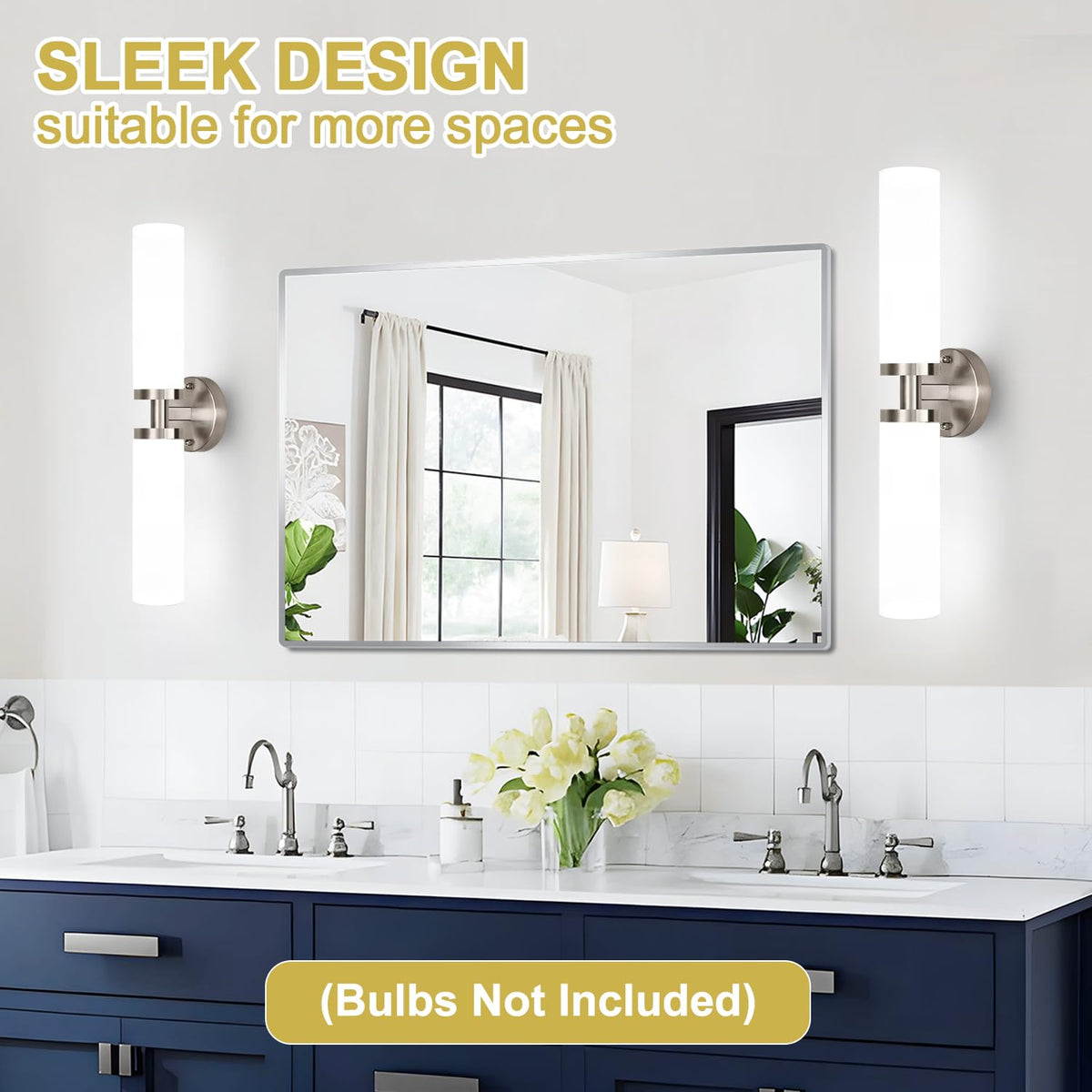 Indoi Wall Sconces Set Of Two Brushed Nickel Gold Bathroom Sconces Wall Lighting With Milky White Glass Modern Sconces Wall Decor Set Of 2 Bathroom Light Fixtures For Mirror Living Room Bedroom