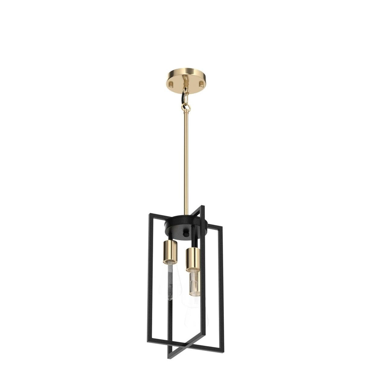 Industrial Farmhouse Pendant Lights, Rectangle 3-Light Modern Black And Golden Chandelier,Geometric Metal Cage Adjustable Rods Pendant Lighting Fixture For Kitchen Island Dining Room Living Room Foyer