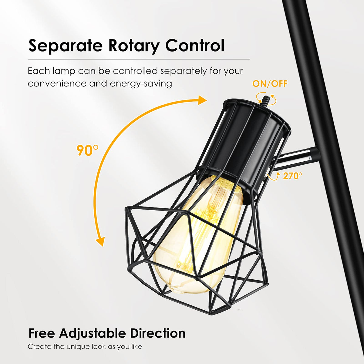 Exclusive Design by Boostarea; Inspired by diamonds, this industrial floor lamp is designed with 3 diamond-shaped lamp cages. Its open lampshade is not only aimed to give brighter lighting for large spaces, but also to create atmospheric aesthetics with light and shadow. Besides, 3 lamp heads of this standing lamp can be freely adjusted, we let you decide the look of your floor lamp. 3pcs 6W LED Bulbs Included; BoostArea insists on producing eco-friendly LED floor lamps to protect the planet; The industrial floor lamp comes with 3pcs 6W LED bulbs, emitting 2700K warm white, highly simulated to natural daylight; With 3 independent switches, you can freely choose which lamps to light. one lamp on for ambient use, two lamps on for work task, three lamps on for family or friends gathering; Also, this standing lamp is compatible with smart devices (not included). Reliable quality for safety; BoostArea designed the industrial floor lamp with high-quality metal material from bottom to top; The lamp cages are made of thick iron wire for long-term use. The weighted extra-large base and sturdy metal pole make this standing lamp safe to have around children and pets because it will not easily tip over; Worry-free Assembly; Please cool down if you start to worry about its assembly; Boostarea has solved the most complicated part before packed; The upper part of the tree floor lamp is a modular design and has been pre-assembled; All you need to do is to all the parts of the lamp pole together to finish the assembly of the tree lamp; To make it easier for you, we have prepared an instruction manual in the package and an assembly video on our product page. Match with multiple home styles; More than a lamp, but also a decor; Boostarea industrial floor lamp combines clean lines and minimalism, leave no bulky shades; This standing lamp fits perfectly with farmhouse, industrial, retro, or contemporary styles. The various uses also make it the ideal floor lamps for you.