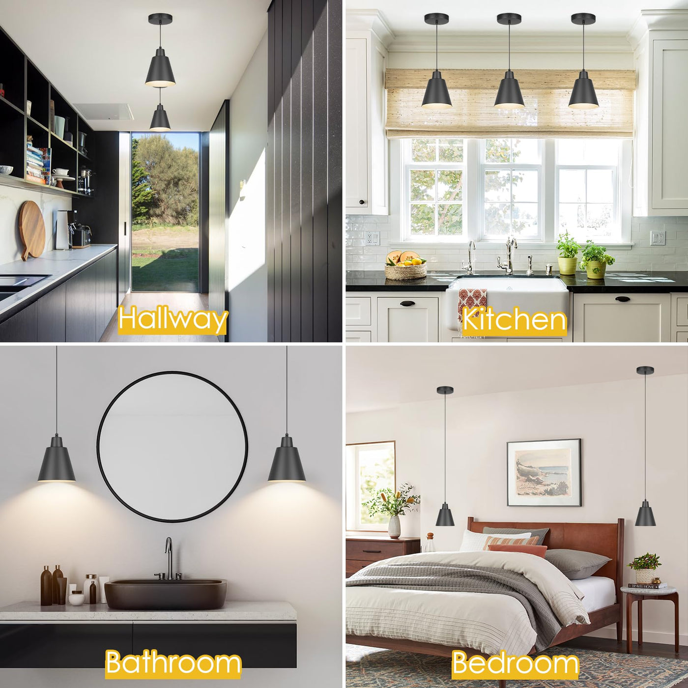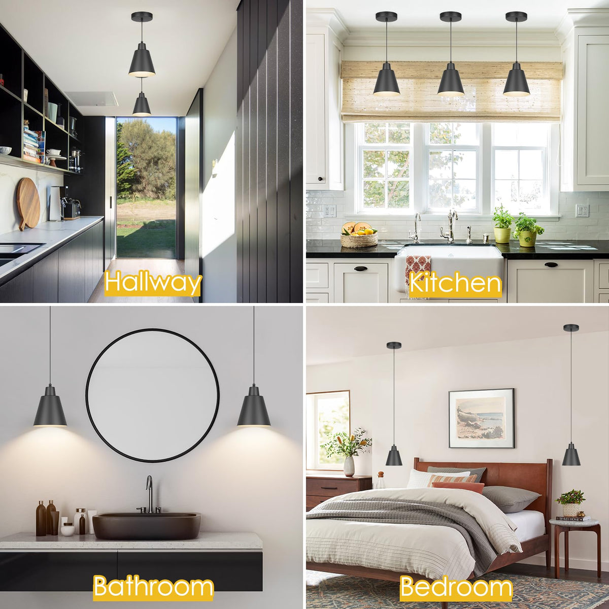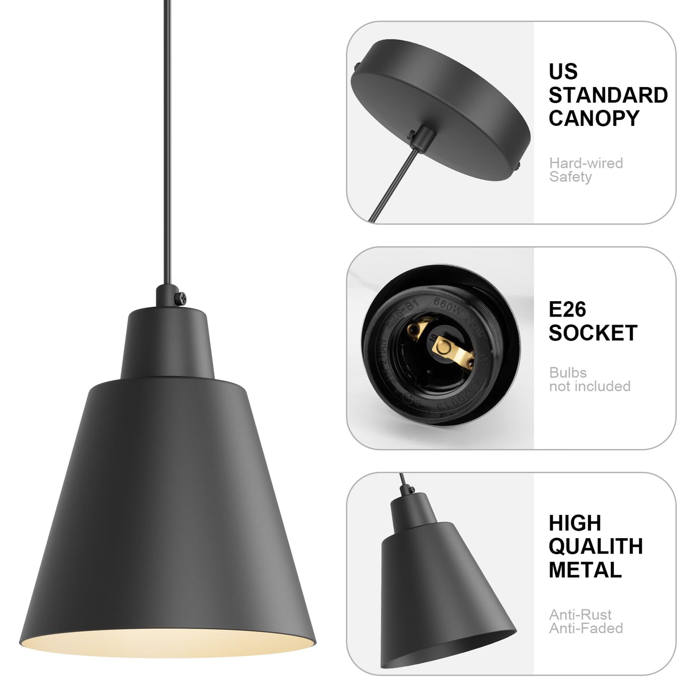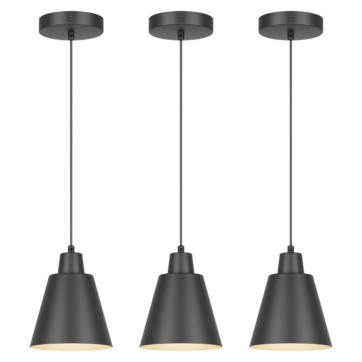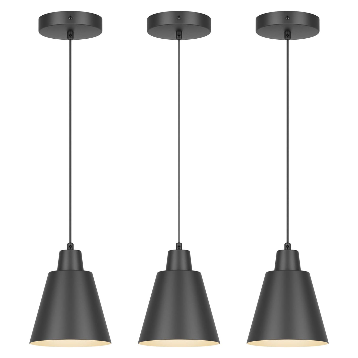 Industrial Pendant Lights, Black Pendant Light Fixtures, Vintage Pendant Lights For Kitchen Island With Black Metal Shade, Farmhouse Pendant Lights For Dinning Table Bedroom Bar - Black, 3 Packs