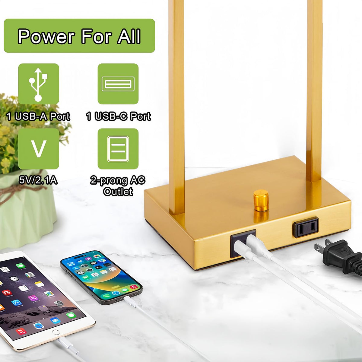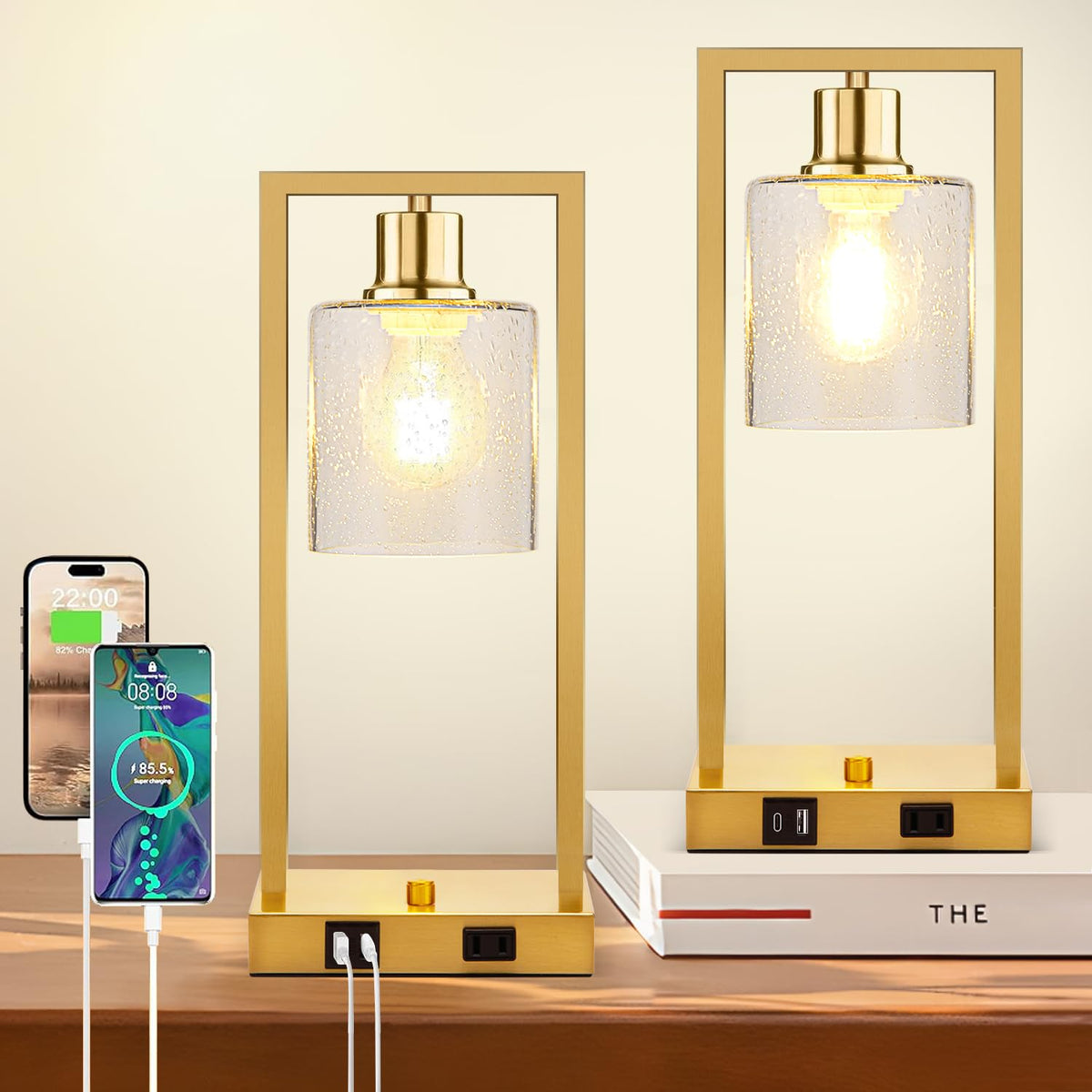 Q: Can I charge multiple devices at once with these lamps?A: Yes, the lamps come with an all-in-one charging station that includes 2 USB ports (5V/2.1A) and 1 outlet, allowing you to charge phones, tablets, and laptops simultaneously.