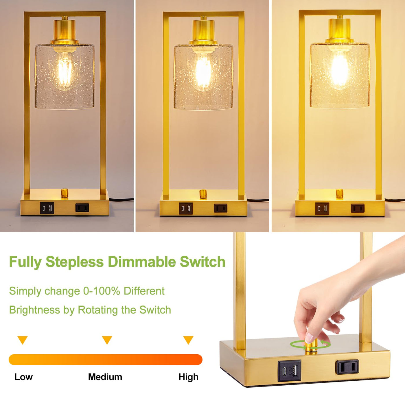 Q: How do the stepless dimming features work?A: The lamps feature a true 0-100% stepless dimming function, allowing you to rotate the knob to adjust the brightness from a maximum of 100% for reading to a minimum of 10% for creating ambient mood lighting.