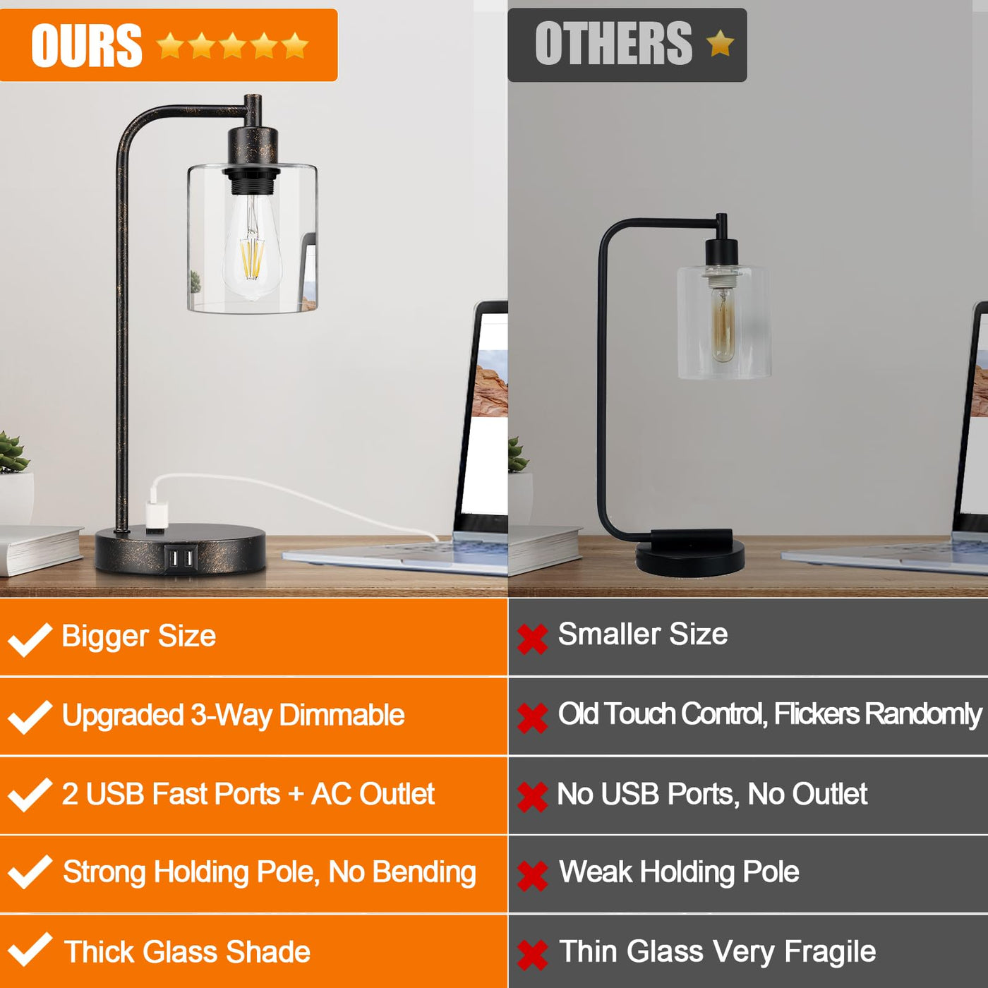 Q: Can I charge multiple devices at once with these lamps?A: Yes, the Industrial Touch Table Lamps come equipped with dual USB charging ports and an extra AC outlet, allowing you to charge up to three electronic devices simultaneously.