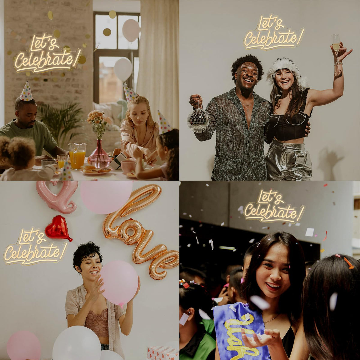 ineonlife Neon Sign - Lets Celebrate Warm White LED Wall Decor - 16.9x10.2 inches - Model HZ-WX-NL-6146