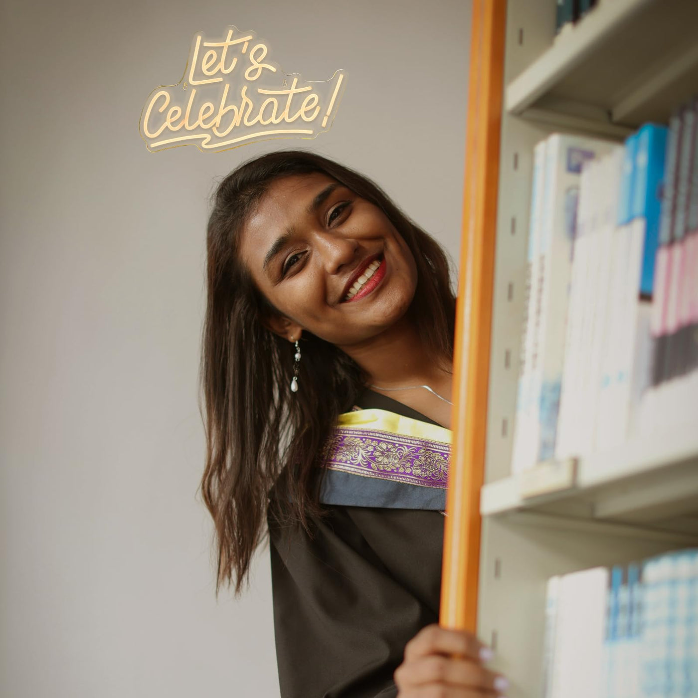 Q: What type of power source does the neon sign require?A: The Let's Celebrate Neon Sign is powered via USB, making it compatible with various USB power sources, such as power banks or wall adapters.