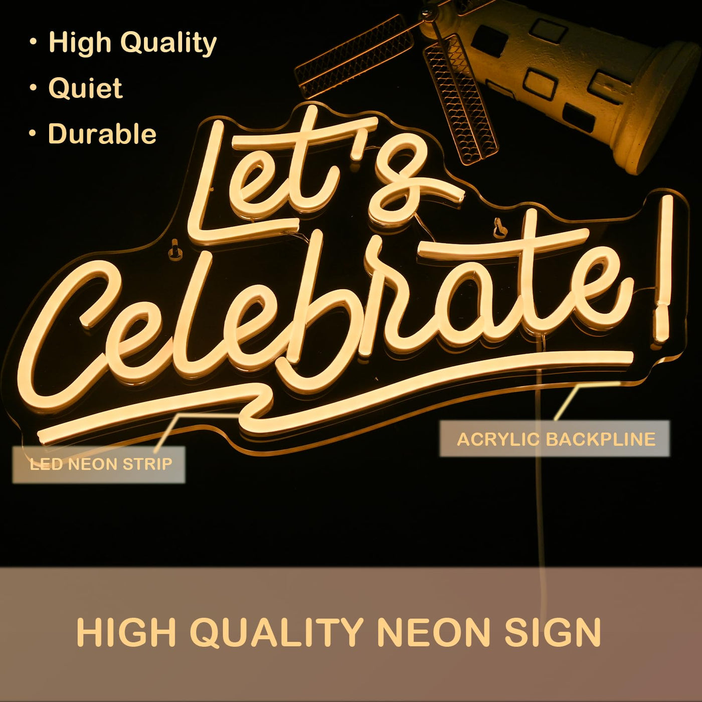 Q: Is the neon sign suitable for outdoor use?A: The Let's Celebrate Neon Sign is designed primarily for indoor use. Prolonged exposure to outdoor elements may affect its durability and performance.