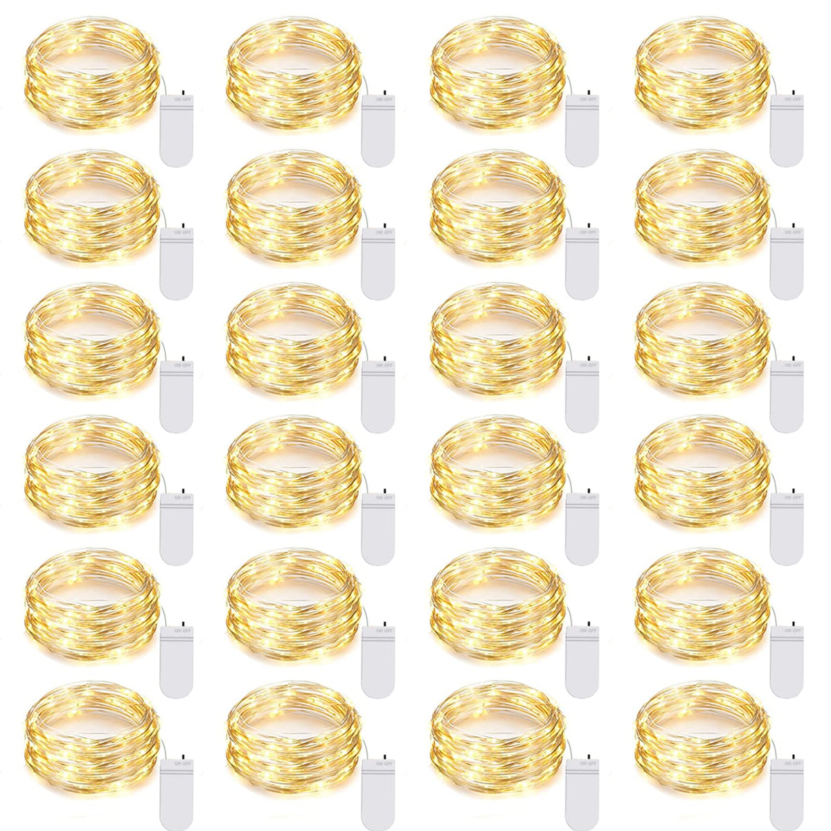 Ineximun 24 Pack Led Fairy Lights Battery Operated 7Ft 20Led Warm White Mini String Lights Waterproof Christmas Lights For Mason Jars Bedroom Diy Party Wedding Christmas Decor