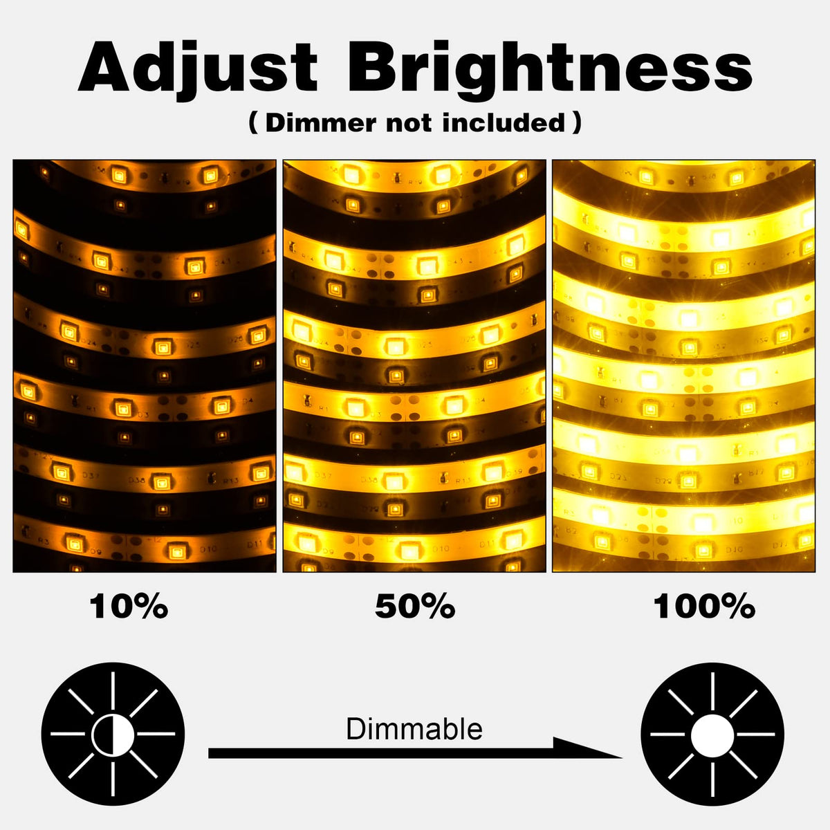 Cuttable and Linkable: The strip can be cut every 3 LEDs at marked intervals, allowing customization to the desired length without damaging the remaining sections.