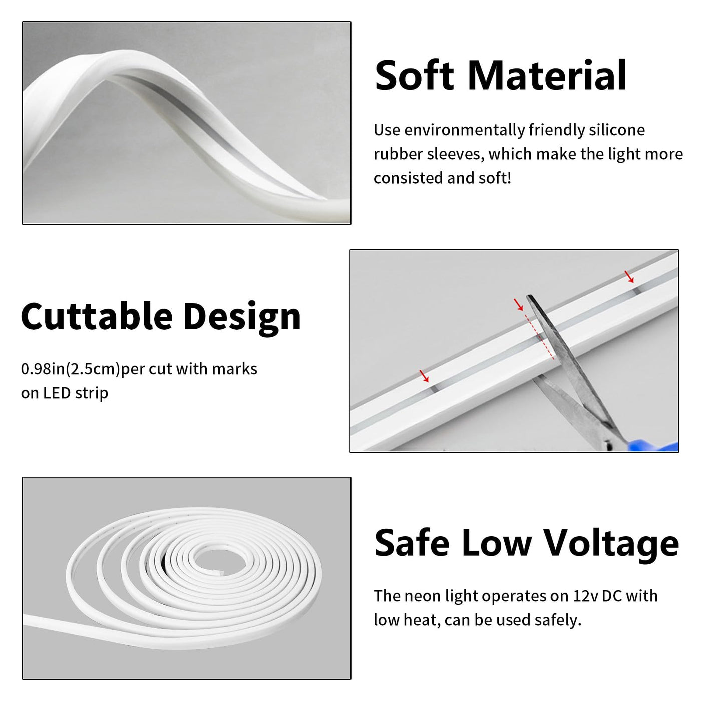 Crafted from durable silicone material, this LED strip light offers a sleek design that is both functional and visually appealing. Unlike traditional LED strips, this product does not feature self-adhesive tape, allowing for versatile installation options. The strip is 5 meters (16.4 feet) long, making it suitable for various applications, whether you want to illuminate a room, highlight architectural features, or add a decorative flair to your outdoor space. Operating at a low voltage of DC 12V, it is energy-efficient while providing bright illumination. Please note that a power adapter is not included; we recommend using a DC 12V 3A output power adapter for optimal performance.