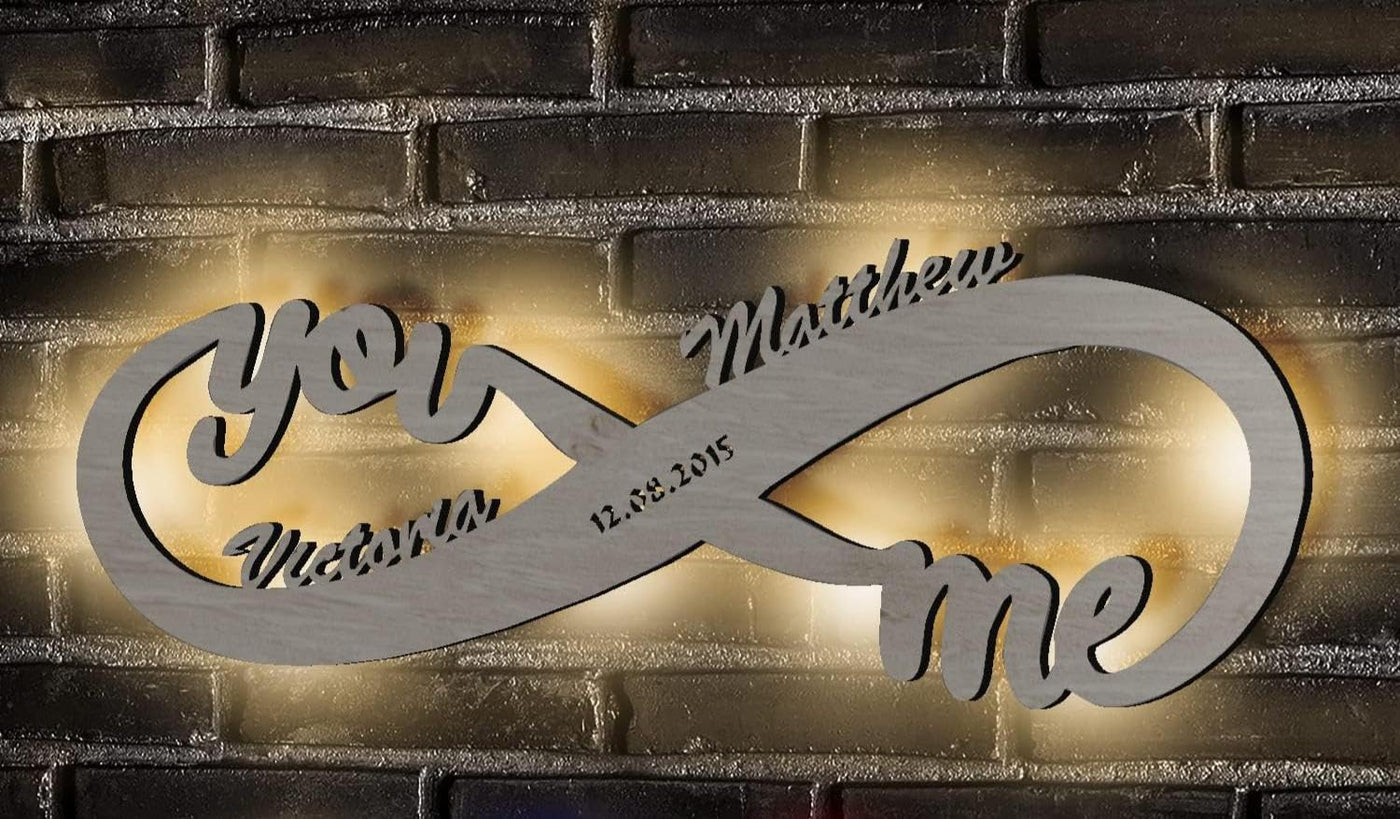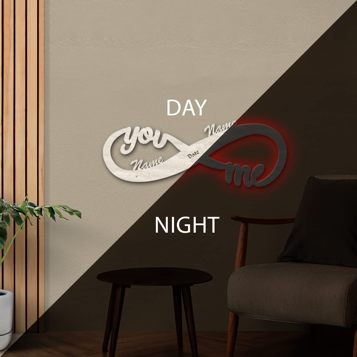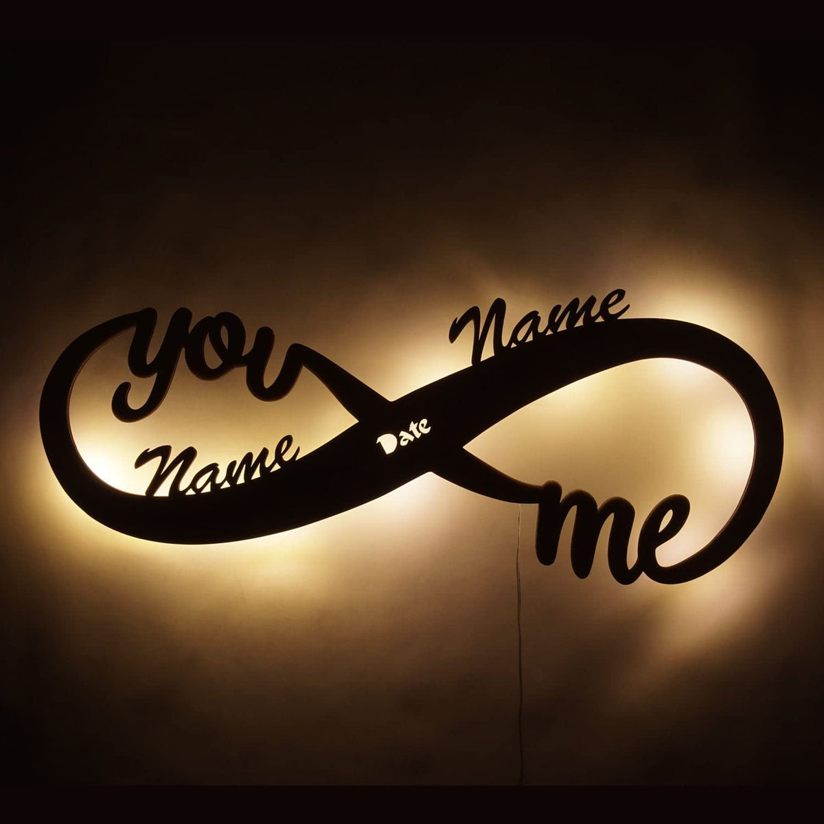 Infinity Wall Decor - Personalized Infinity Led Wooden Night Light - Couples Names Sign - Infinity Sign For Valentines - Wedding