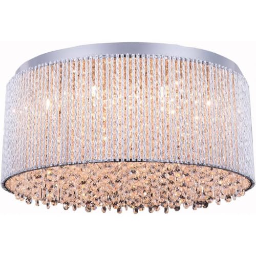 This ring of celestial light will leave an impression of dynamic resonance in your bedroom, dining room, or entryway with the Influx collection of flush-mount fixtures. Multifaceted, royal-cut crystal beads dance within a glistening chrome silhouette of metallic twists. Be swept you off your feet by this contemporary lighting fixture that inspires a glow of brilliant, breathtaking wonder. Room use: Dining room; Living room; Bedroom; Bathroom; Entry Way; Closet Fixture is 20 inches in diameter and 12 inches in height Warm, brilliant light is created by 12 light bulbs. (not included). Dining Room/Living Room/Bedroom/Bathroom/Entry Way/Closet2 Years / Mounting Direction: Down / Assembly Required: Yes / Canopy Included: Yes / Shade Included: Yes.