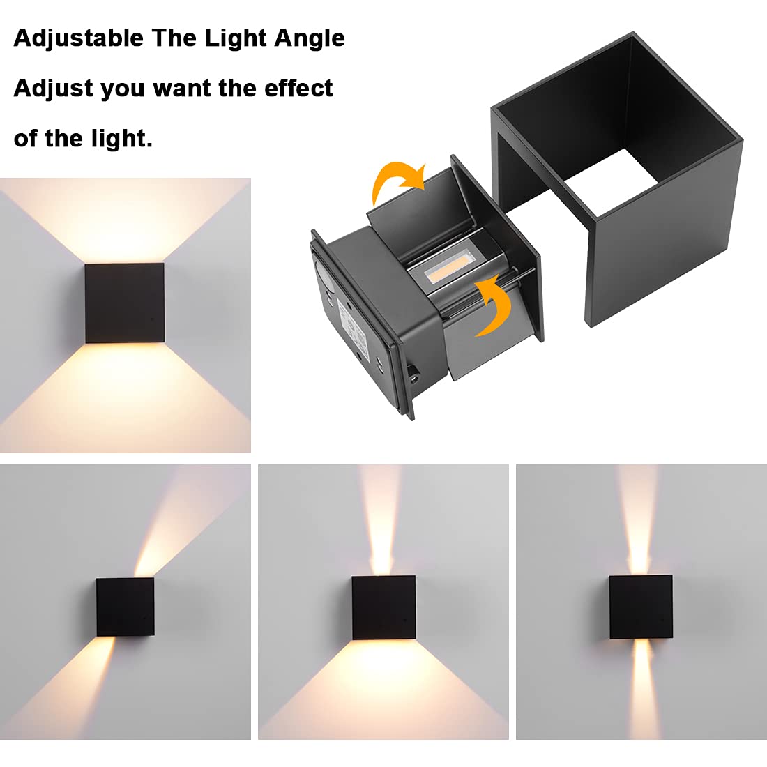 Inhdbox Led Waterproof Wall Lamp, 12W Adjustable Up/Down Modern Sconce, Warm Light, Dark Black