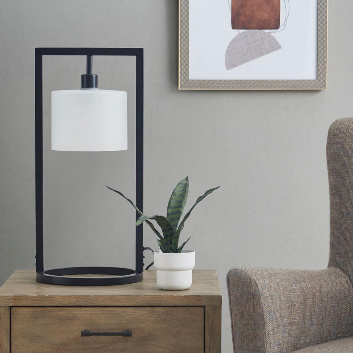 - **Versatile Color Scheme**: The striking black base and frosted shade provide a sophisticated look that complements various color palettes and styles.