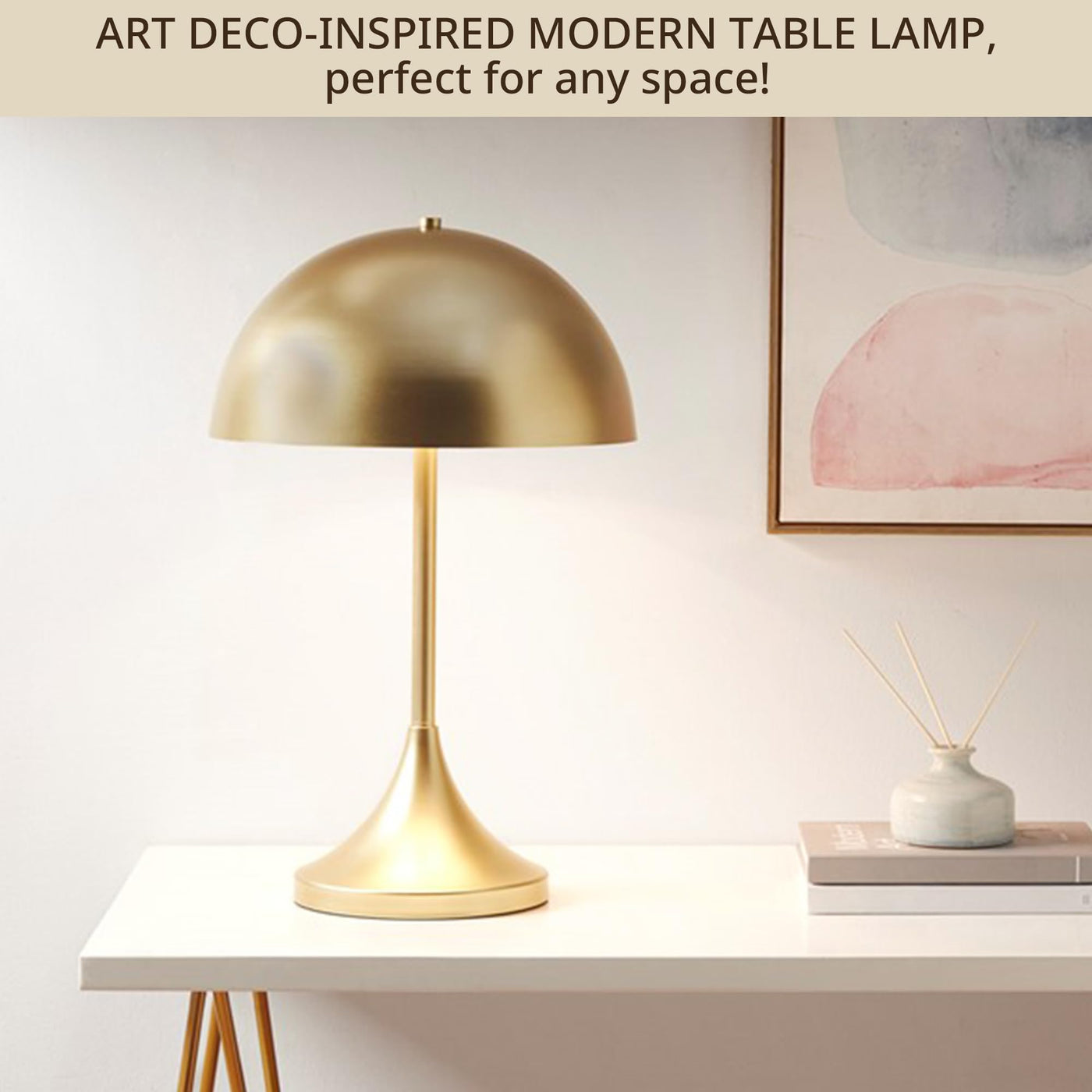 Illuminate your space with the art deco-inspired Bryson table lamp from Ink+Ivy. The elegant dome-shaped design features a gold metal shade and base, emitting soft ambient lighting perfect for side tables, nightstands, and more. It comes with a 2-year limited warranty for peace of mind.