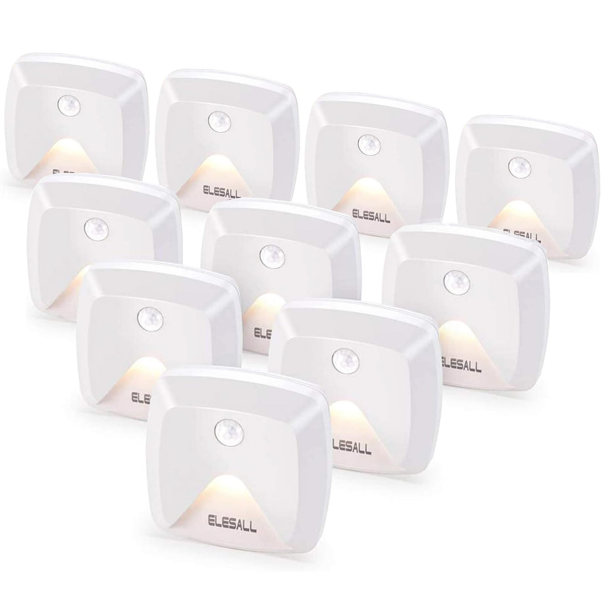 Innofox 10Pack Stick-On Motion Sensor Lights Warm White Led Night Light Stick-Anywhere Stair Lights Closet Light Battery Operated Wall Light For Kitchen Hallway Bedroom Bathroom Stairs