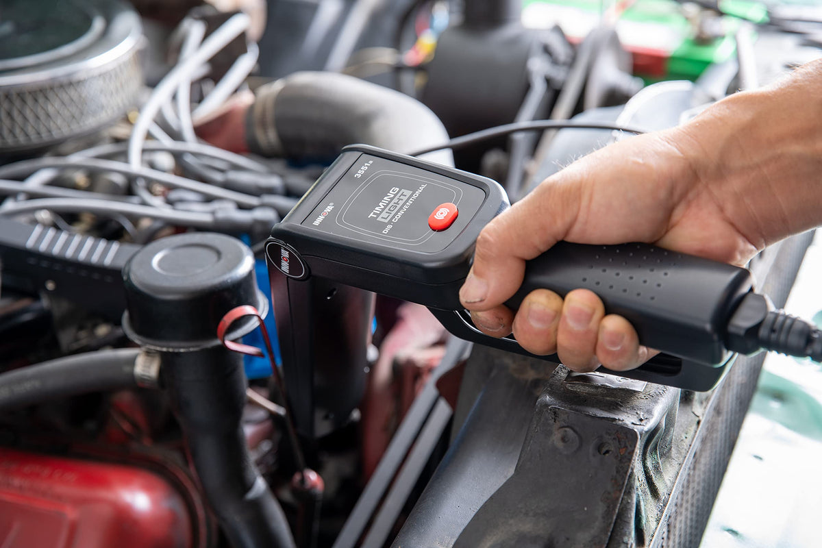The INNOVA 3551 Inductive Timing Light Check is designed to accurately read timing, diagnose a no-spark condition, check for electronic advance/retard and more. This includes slim, rotating barrel for better aim at timing mark and protective hand guard for one-hand operation. Works with most ignition systems: DIS, conventional, electronic, and computer-controlled systems - domestic and imports. The INNOVA 3551 also has the Patented Skip Circuitry Test up to 9,990 RPM.