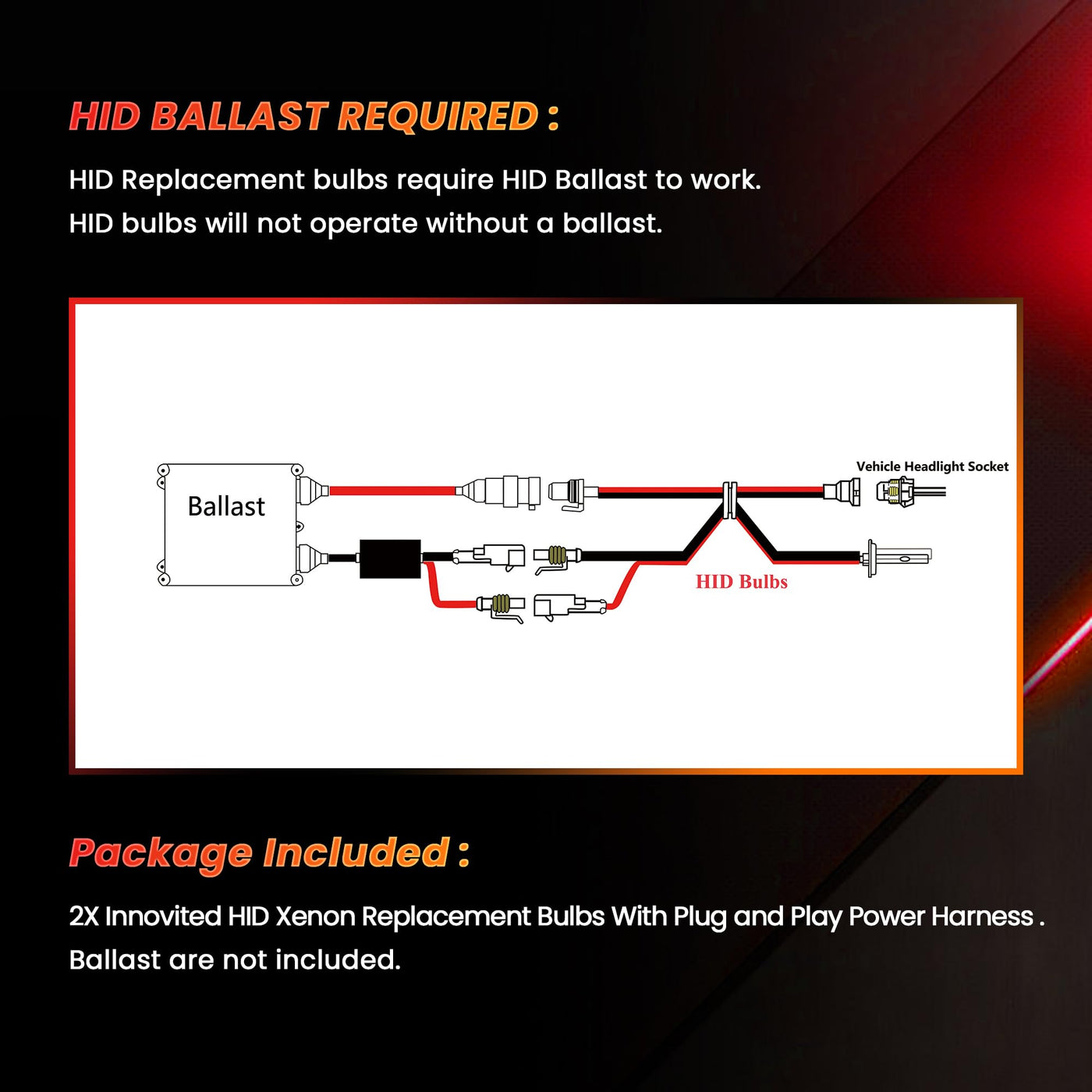 The Innovited HID Replacement Bulbs are designed to enhance visibility and safety while driving at night. These bulbs provide a powerful, efficient lighting solution for compatible vehicles, making them an excellent choice for drivers seeking improved headlight performance.