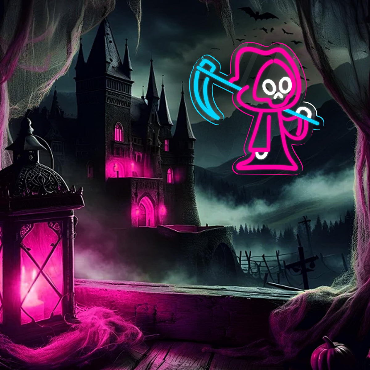 Innovtools Halloween Ghost Neon Sign Led Grim Reaper Neon Signs For Wall Decor Dimmable Ghost Shape Neon Light Spooky Halloween Decorations Light Up Sign For Bedroom Porch Front Door Kids Gifts (Ghost)
