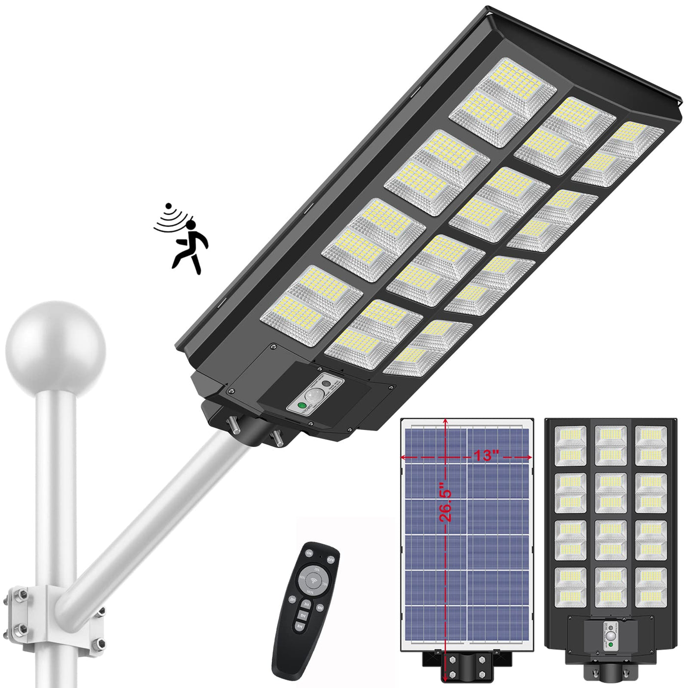1200W Led Solar Street Light Motion Sensor, 80000LM IP66 Waterproof Solar Security Flood Lights Outdoor with Remote control & Arm Pole, Dusk to Dawn Solar LED Light Lamp for garden Yard Parking Lot