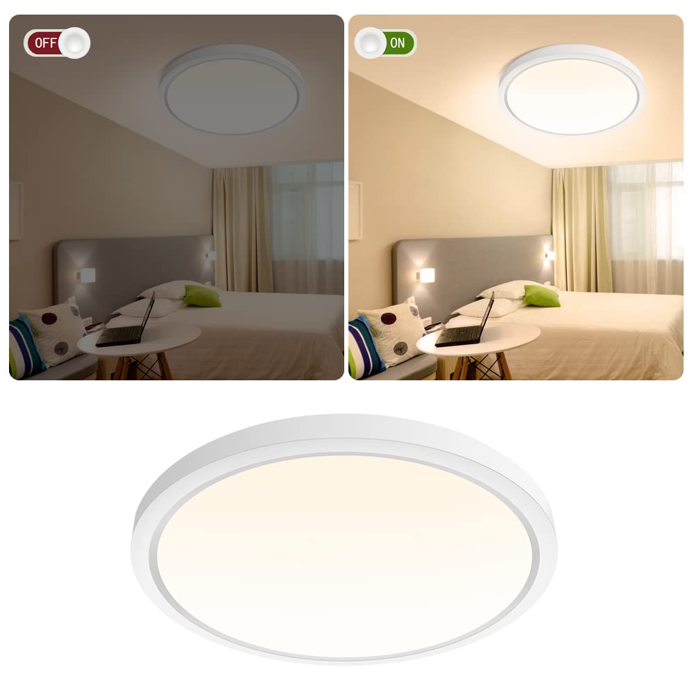 inShareplus 9inch LED Flush Mount Ceiling Light Fixture, 18W, Warm White, 1800LM, Plastic