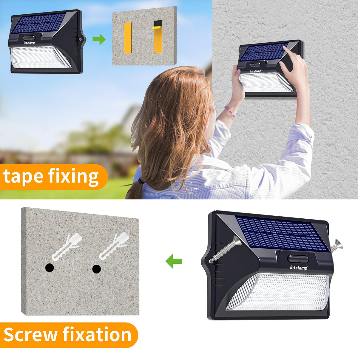 Q: How do I install the Intelamp Solar Fence Lights?A: Installation is simple and can be done in a few minutes. You can either use adhesive for smooth surfaces like glass or wood or mount them with screws on walls or decks. No wiring is necessary, making setup hassle-free.