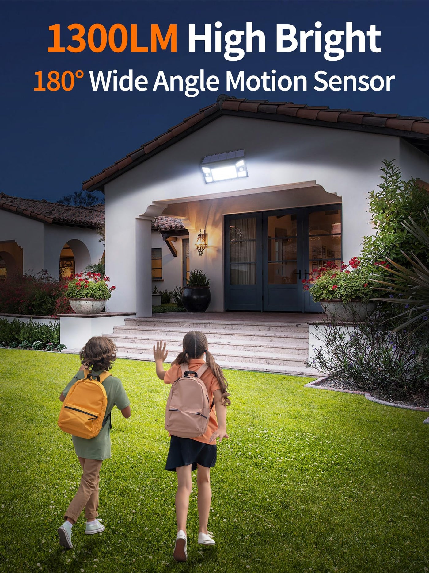 Q: How does the dual sensor feature enhance the security coverage of these outdoor lights?A: The intelamp Solar Outdoor Lights utilize advanced dual motion sensors that detect motion over a much wider range than single sensor models, providing a full 180 degrees of security coverage and reducing blind spots for enhanced nighttime protection.