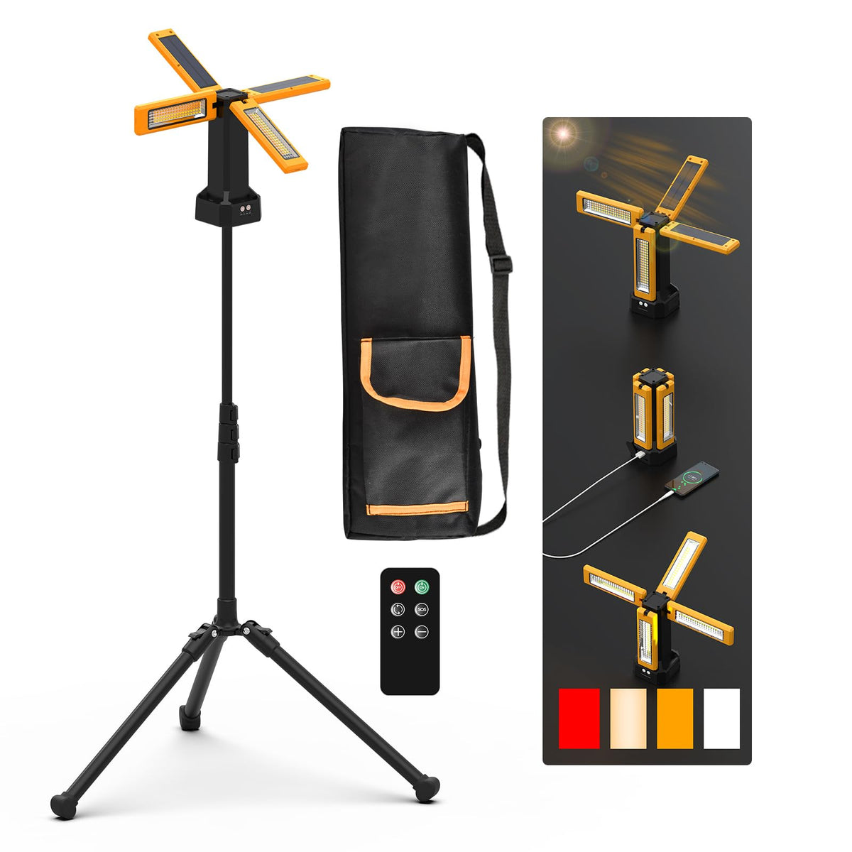 Iodoo 13200Mah Rechargeable Solar Work Light With Folding Stand Support And Portable Carrying Bag, 8000 Lumen Stepless Dimmable, 4 Lighting Modes, White/Warm/Warm White (Remote)
