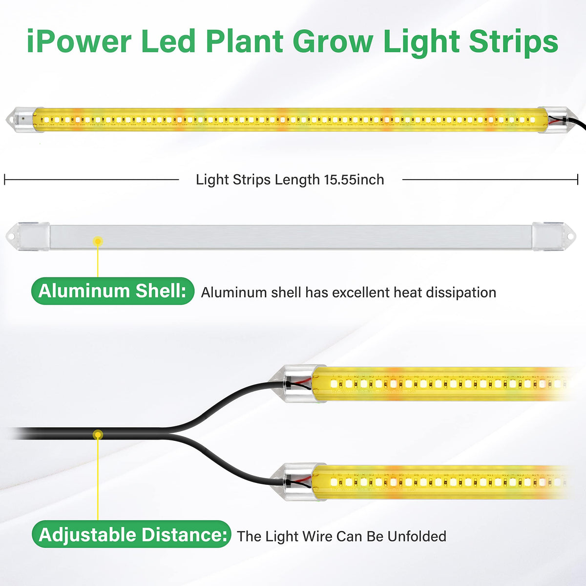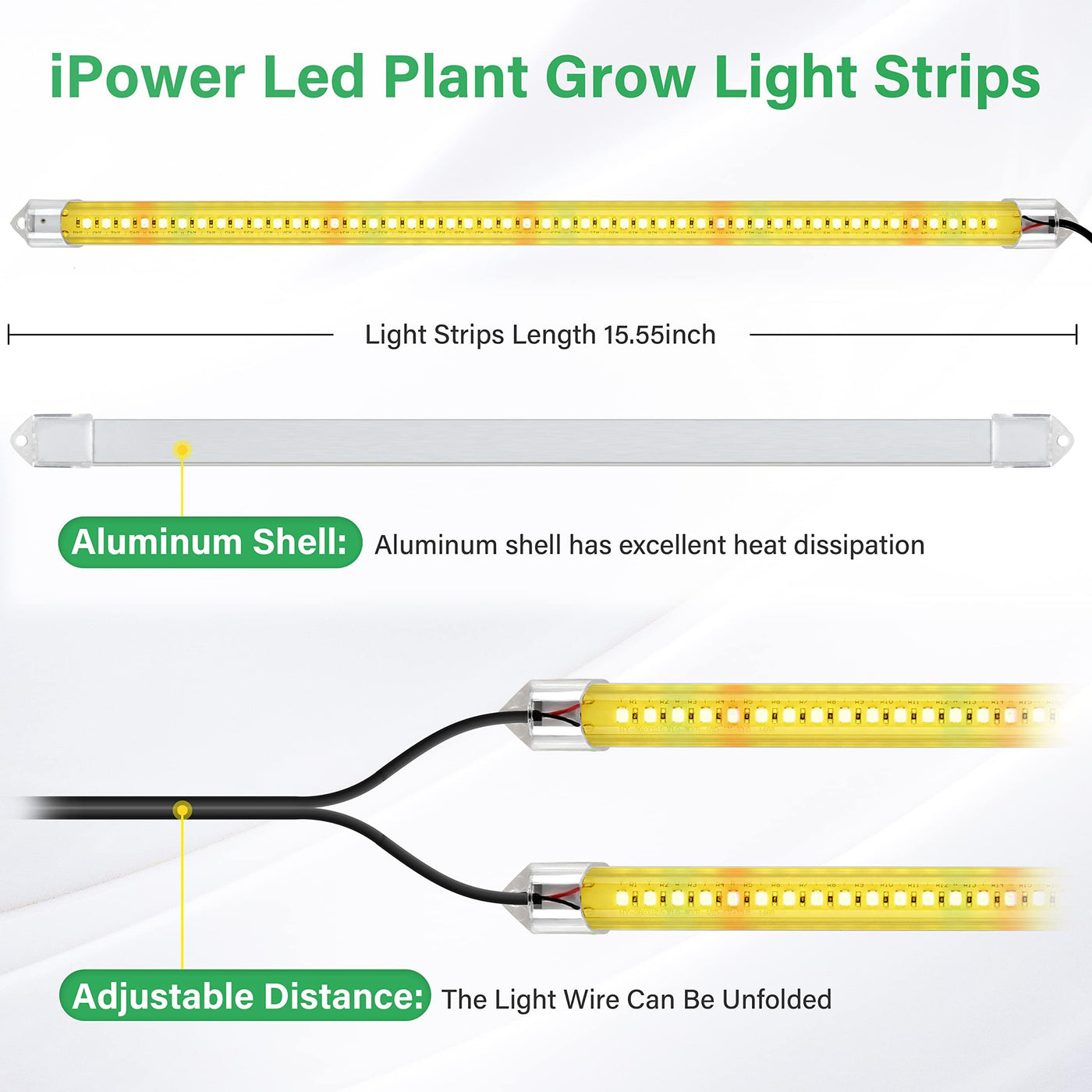 Ipower 20W Full Spectrum Led Grow Light Strips, Auto On/Off Timer, 2 Tubes, Yellow