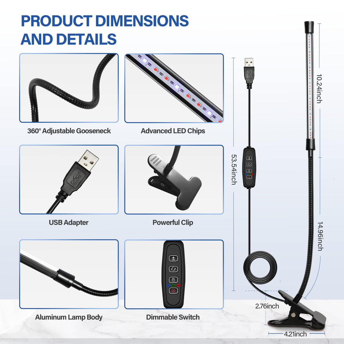 Ipower Plant Grow Light, 6000K Full Spectrum Clip Led Growing Lamp For Indoor Plants, Automatic Timer & 10 Dimmable Levels, 1 Tu